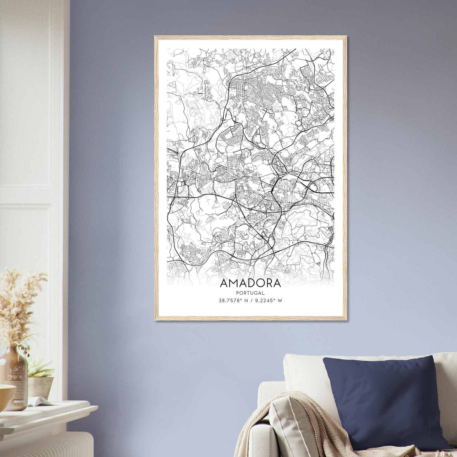 Transform your home decor with this stunning Amadora Map Poster. This high-quality paper print features a detailed street map of Amadora, making it a perfect addition to your modern home decor collection. Whether you’re born in Amadora or a visitor to the city, this map poster is a great way to explore the city.