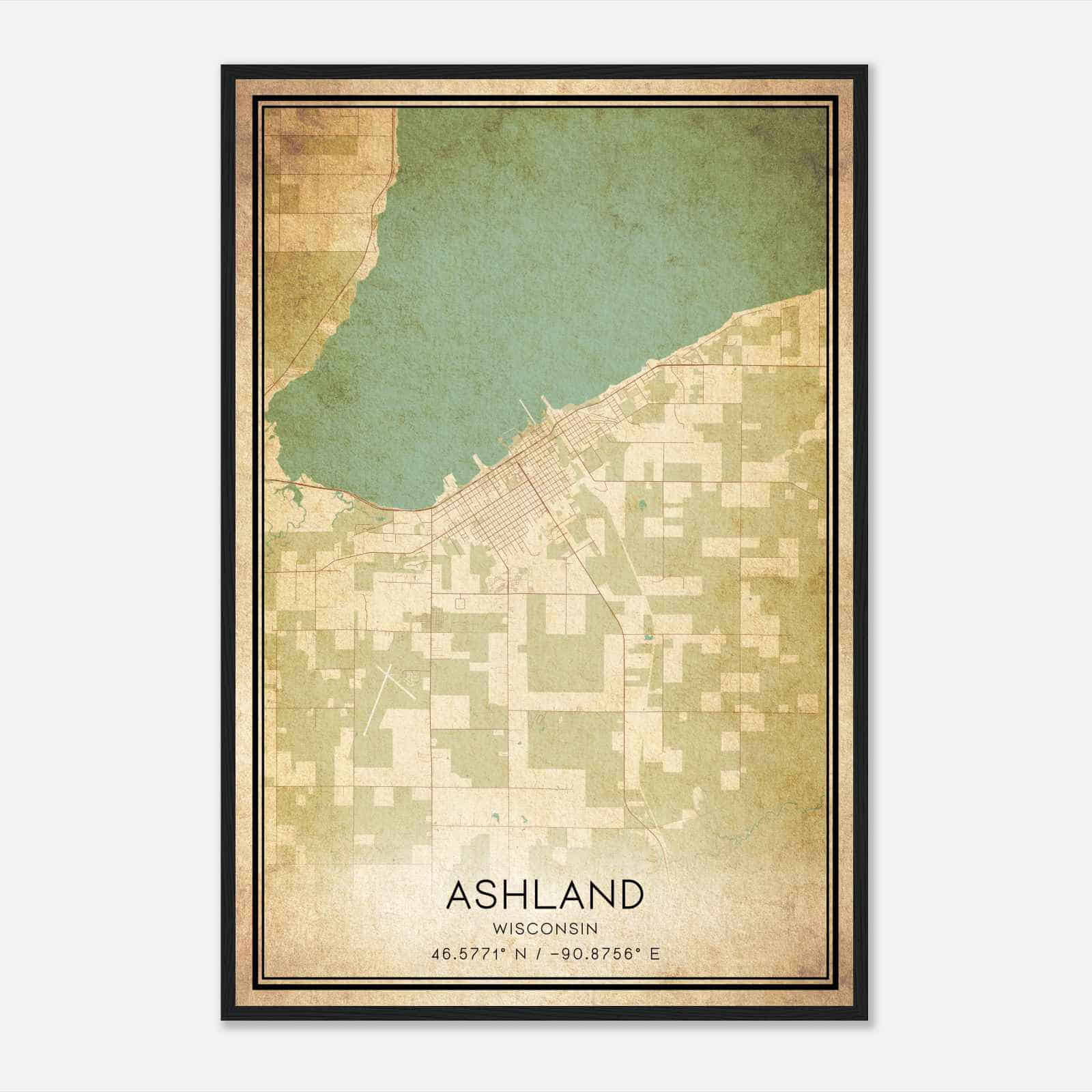 Ashland Wisconsin Map Poster, Modern Home Decor Wall Art Print