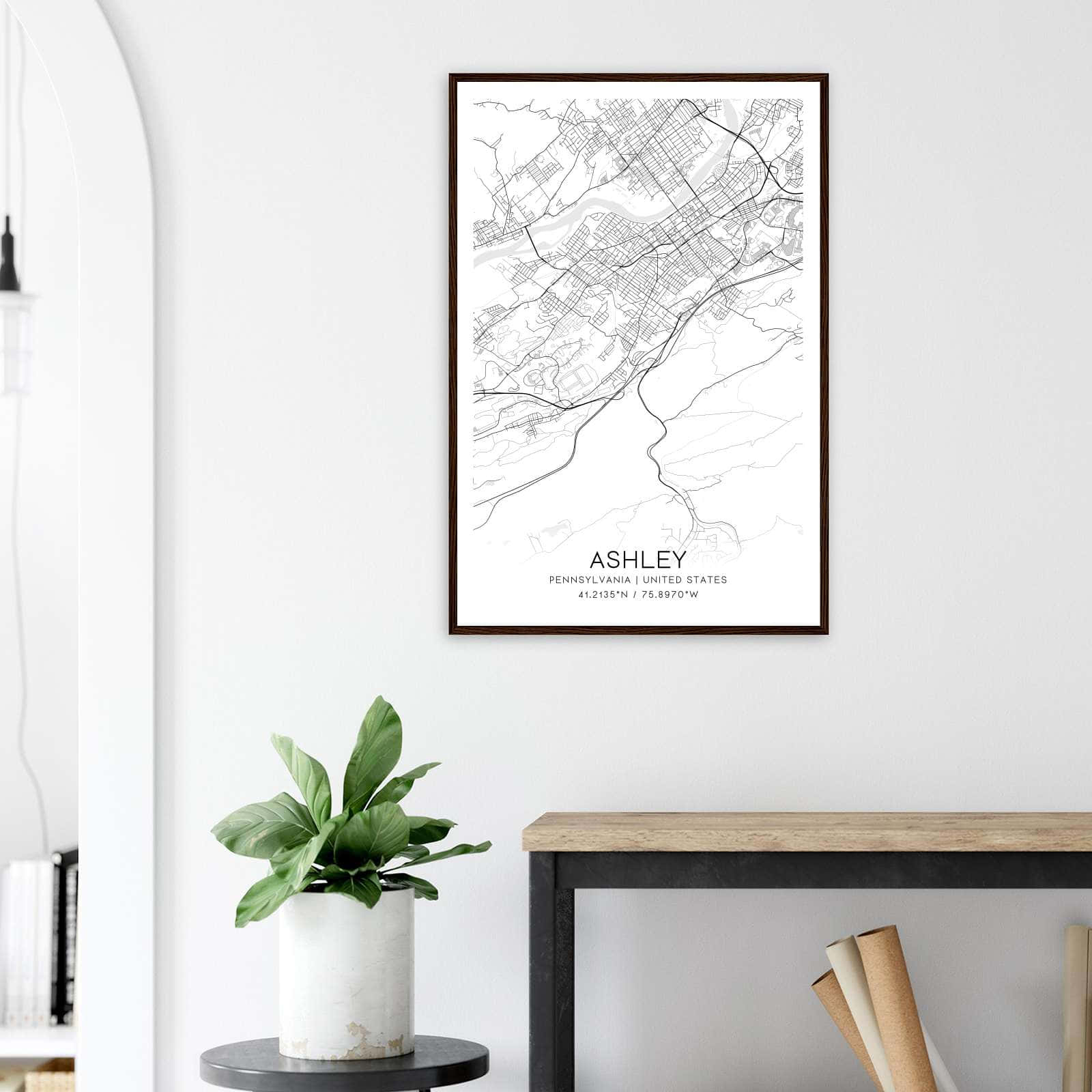 Ashley Pennsylvania Map Poster, Modern Home Decor Wall Art Print