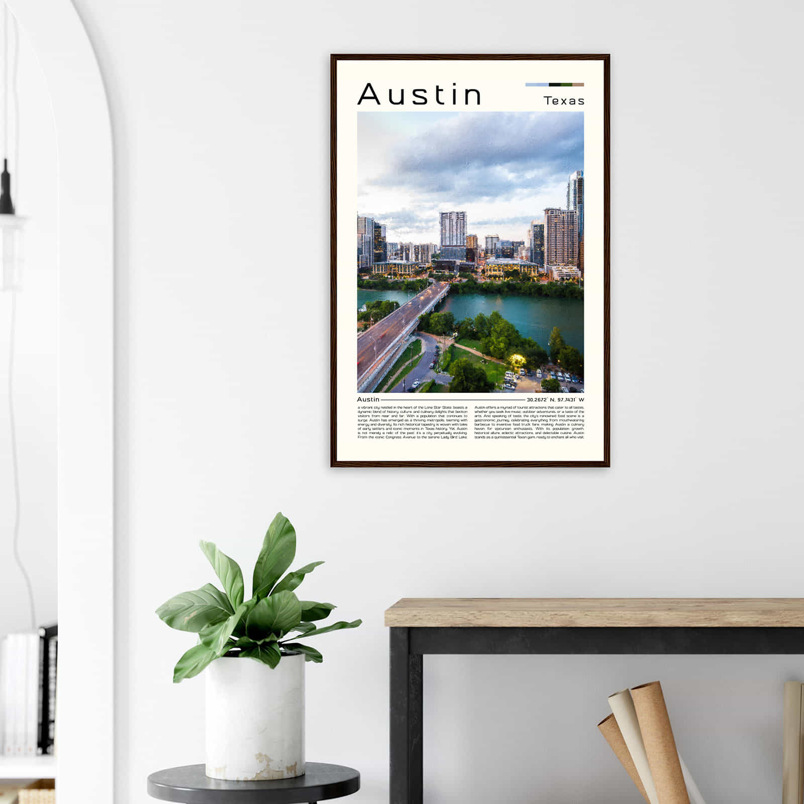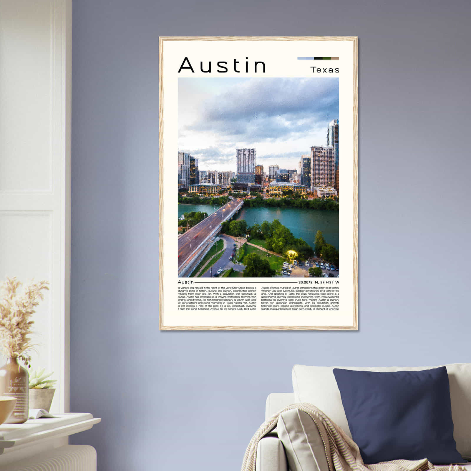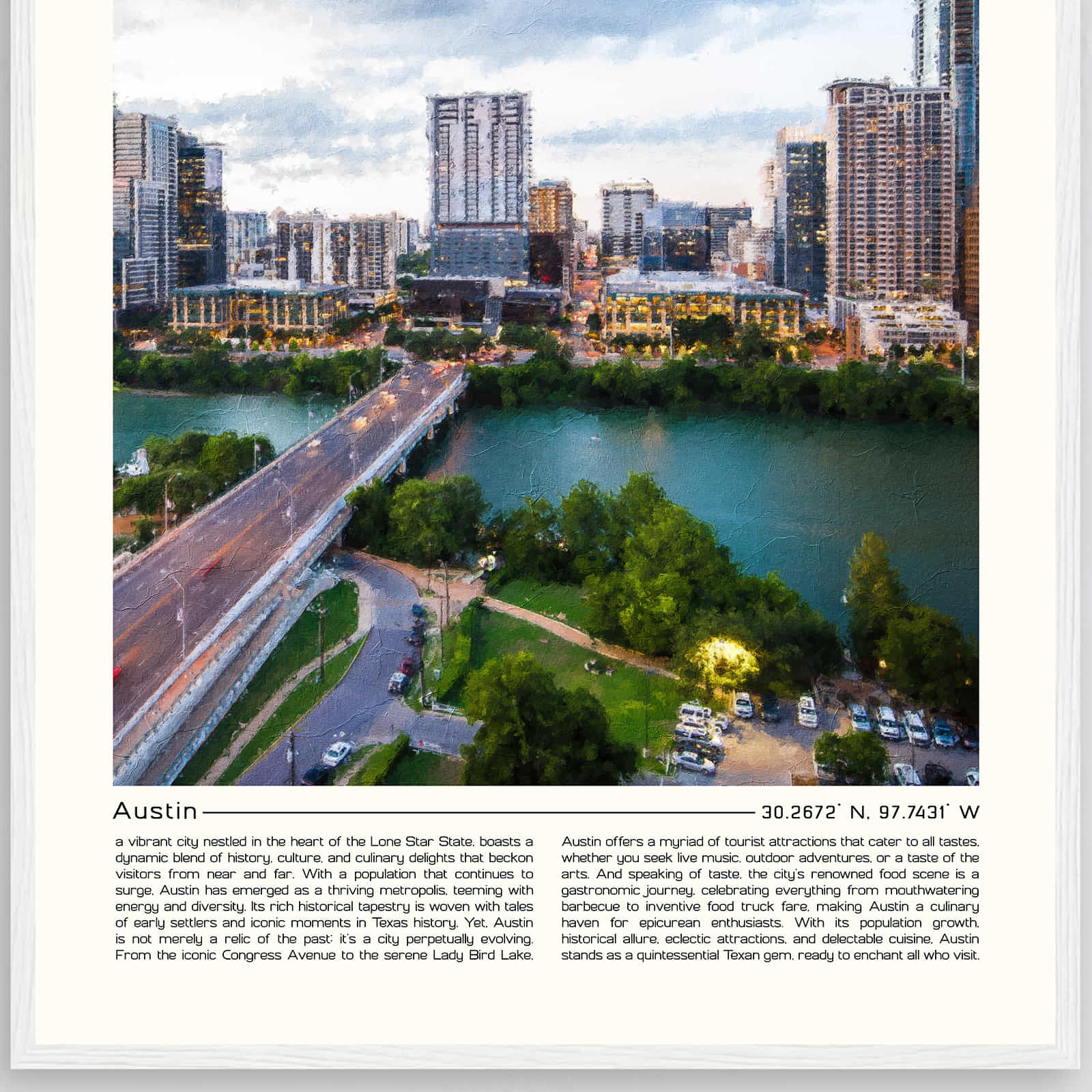 Austin Texas Cityscape Poster Print, Austin Texas Digital Oil Paint Poster DS-3