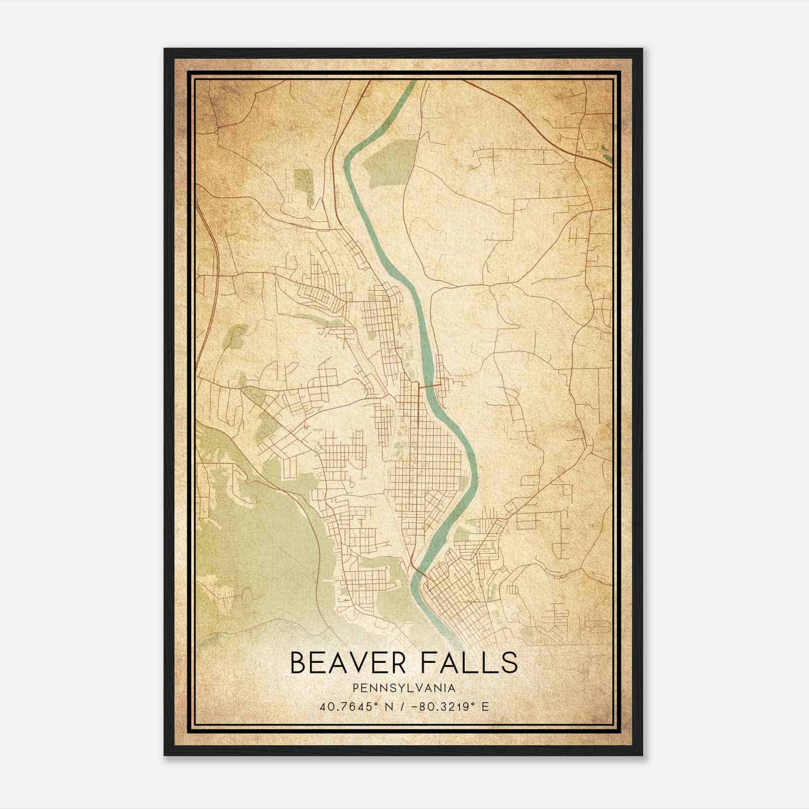 Get this Beaver Falls Map Poster today and add a unique touch to your living space!