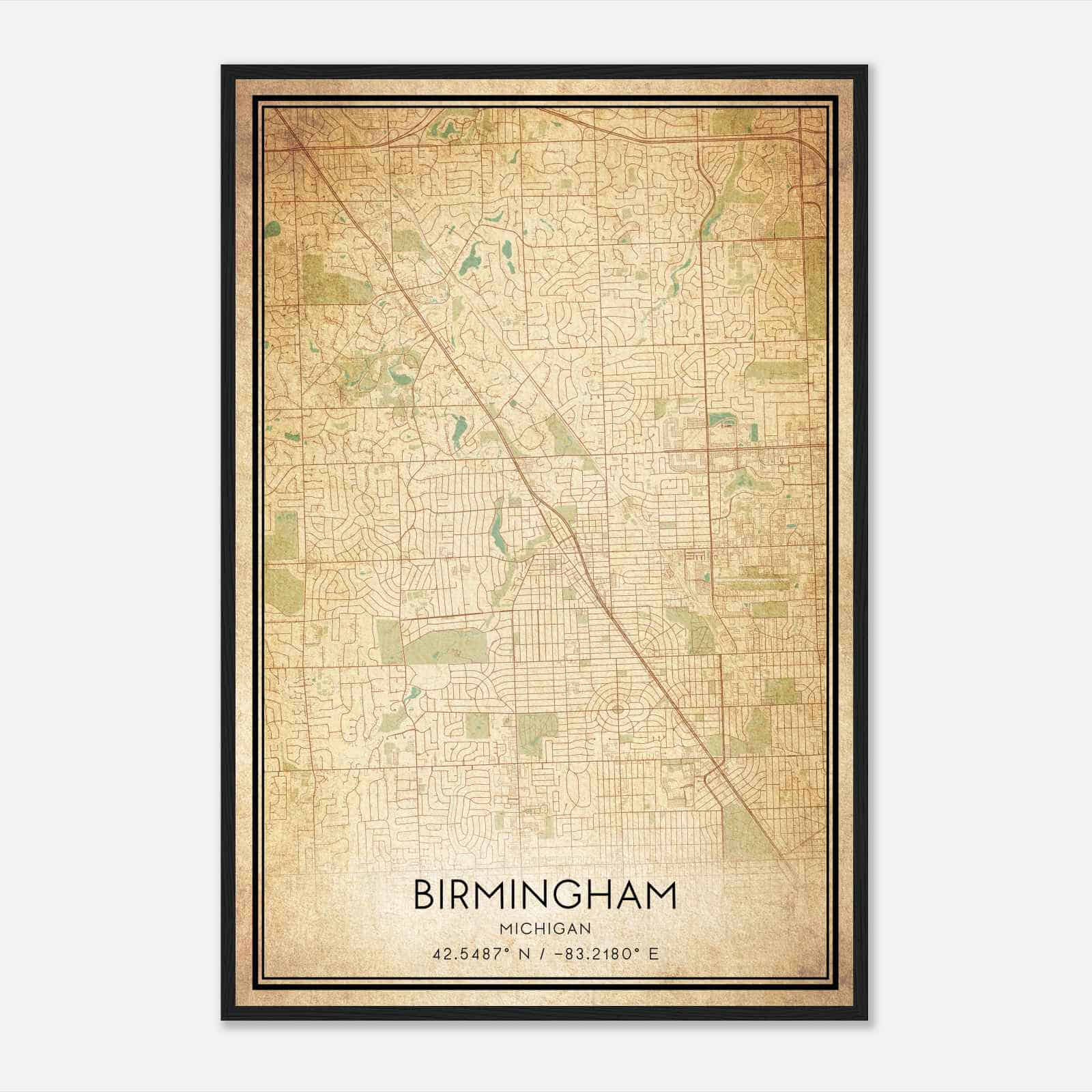 Birmingham Michigan Map Poster, Modern Home Decor Wall Art Print