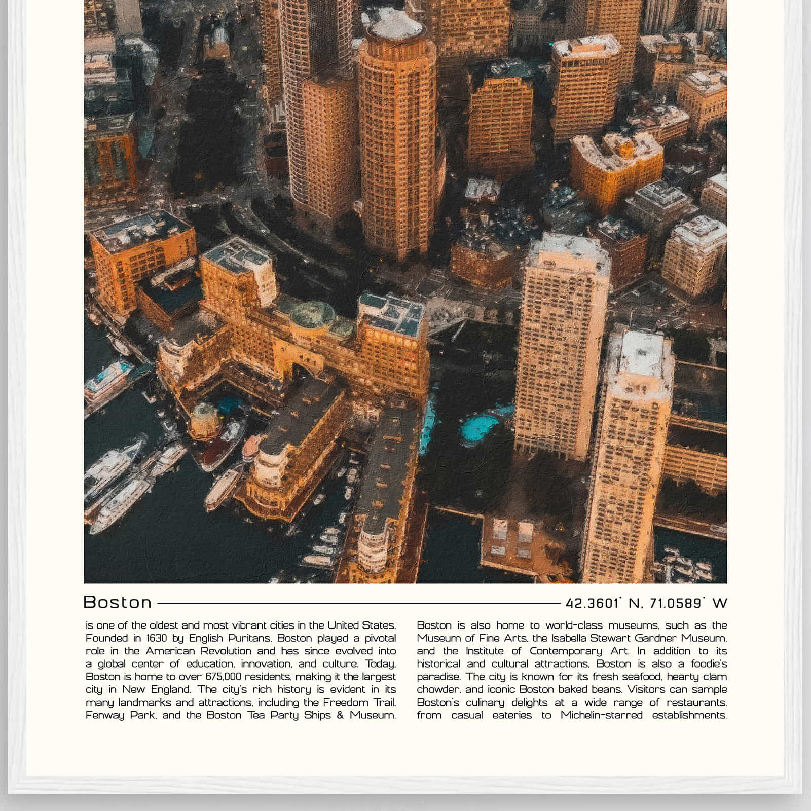 Boston Massachusetts Cityscape Poster Print, Boston Massachusetts Digital Oil Paint Poster DS-1
