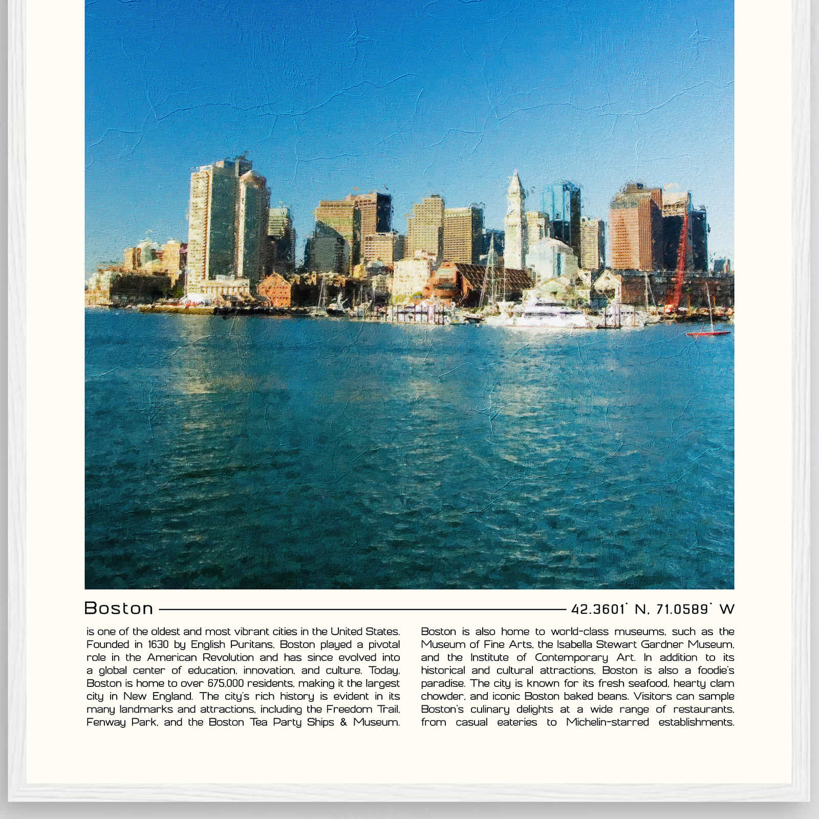 Boston Massachusetts Cityscape Poster Print, Boston Massachusetts Digital Oil Paint Poster DS-2