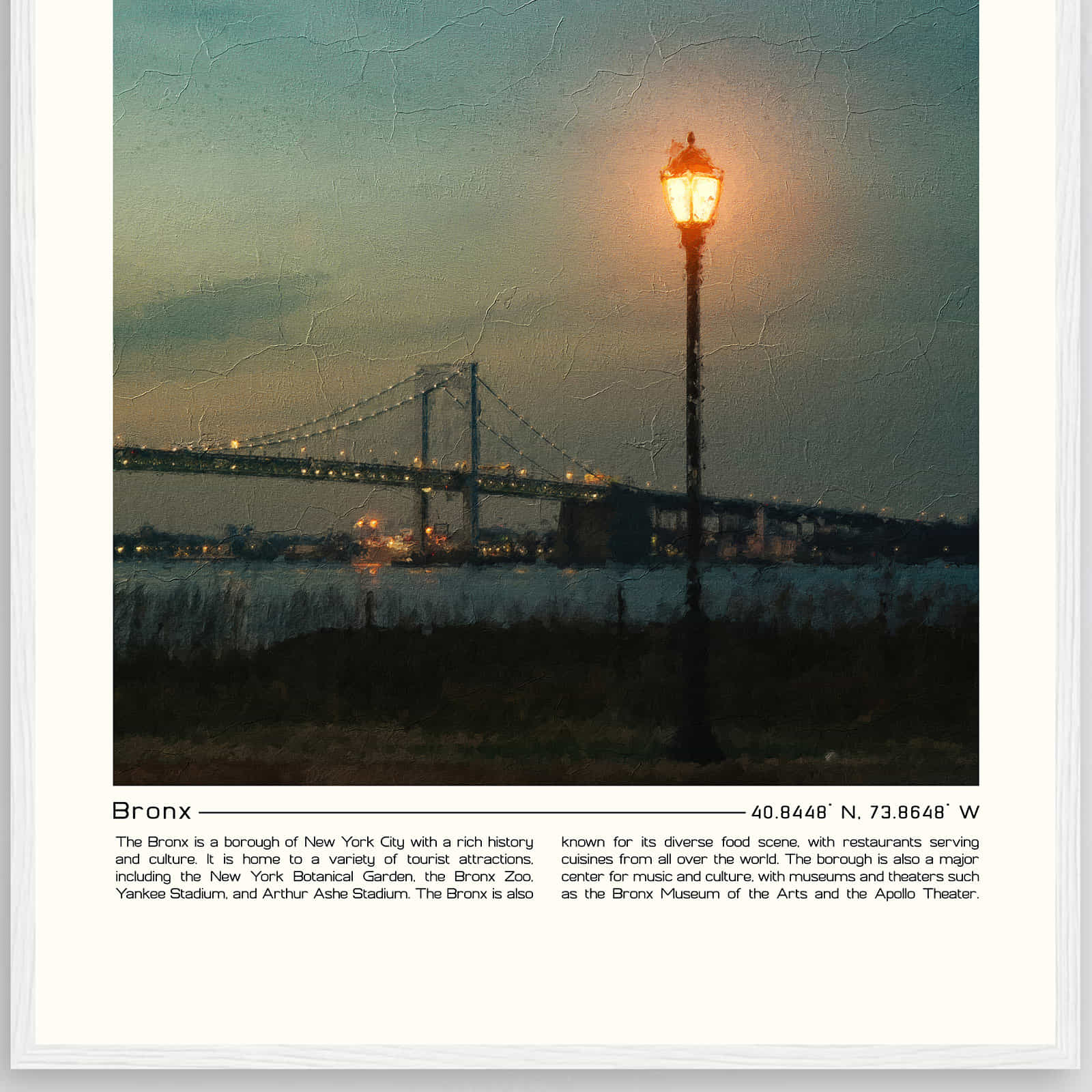 Looking for a way to add style to your home? Bronx New York art prints are a great option. Bronx New York is a beautiful city with a rich history and culture. There are many iconic landmarks in Bronx New York, such as the Bronx Zoo, the New York Botanical Garden, and the Bronx Museum. These landmarks are popular subjects for art prints.