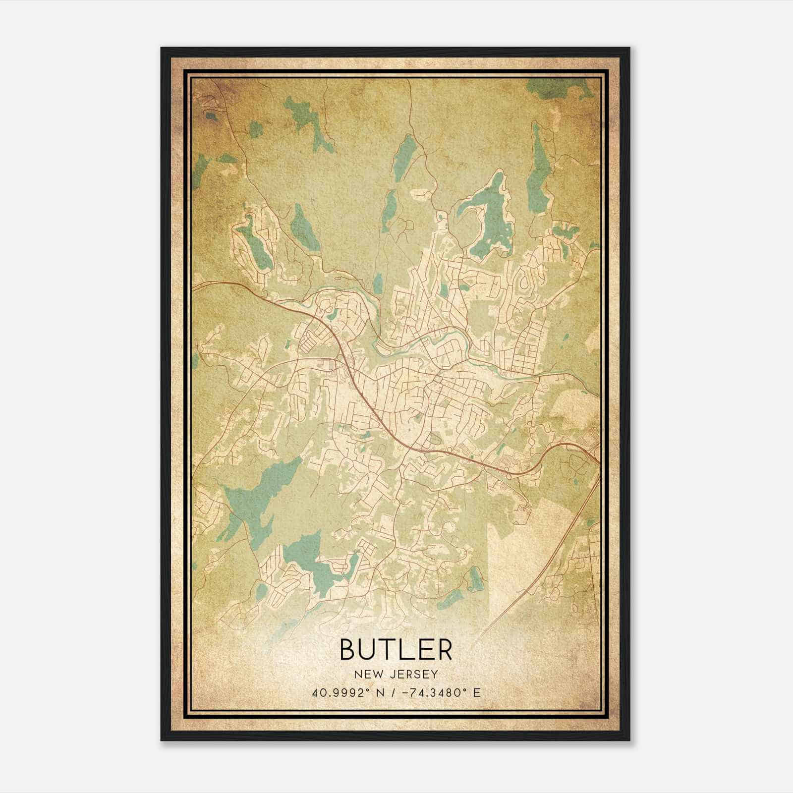 Butler New Jersey Map Poster, Modern Home Decor Wall Art Print