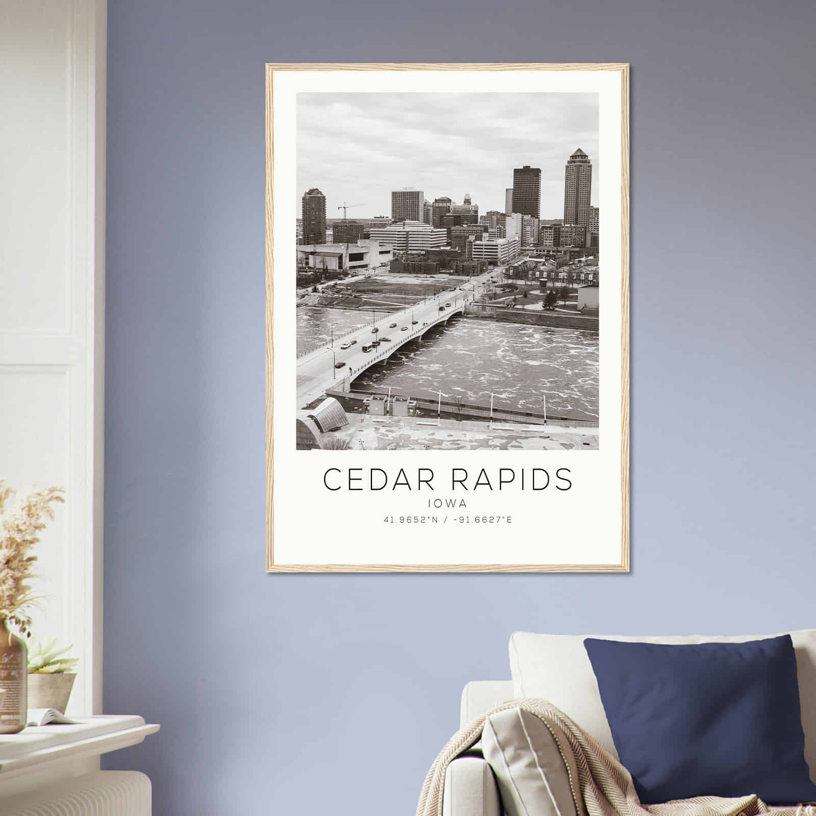 Cedar Rapids Iowa Photo Travel Poster BW, Cedar Rapids Travel Print, Minimalist Travel Print DS2