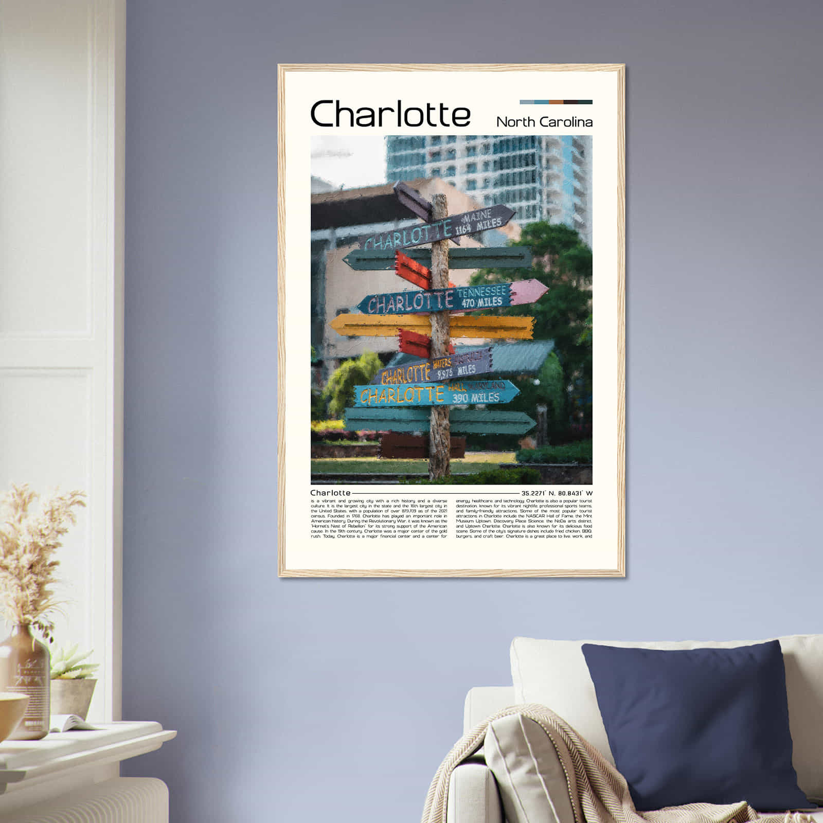 Charlotte North Carolina Cityscape Poster Print, Charlotte North Carolina Digital Oil Paint Poster DS-3