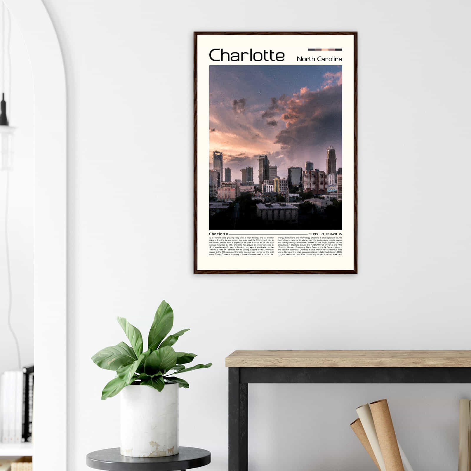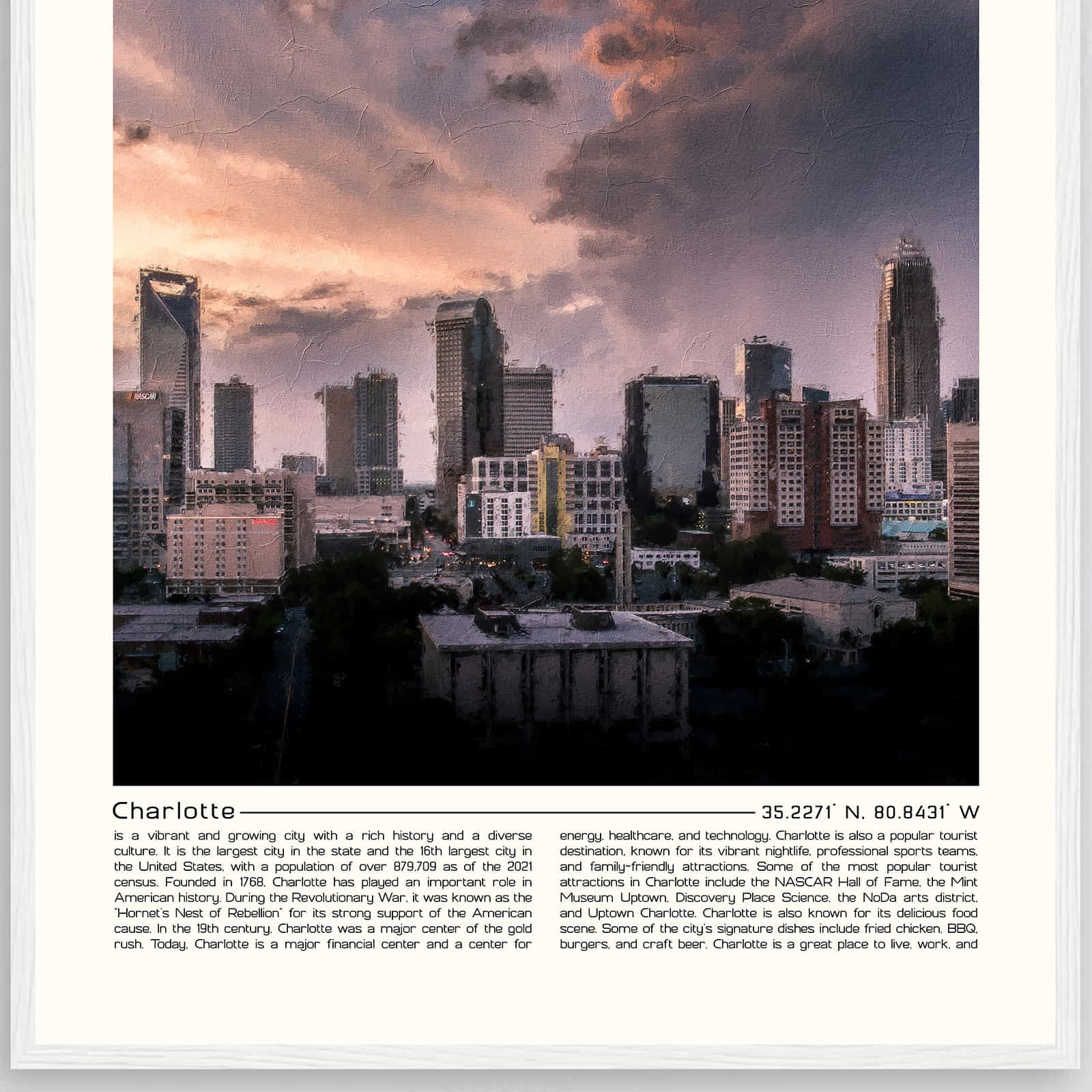 Charlotte North Carolina Cityscape Poster Print, Charlotte North Carolina Digital Oil Paint Poster DS-6