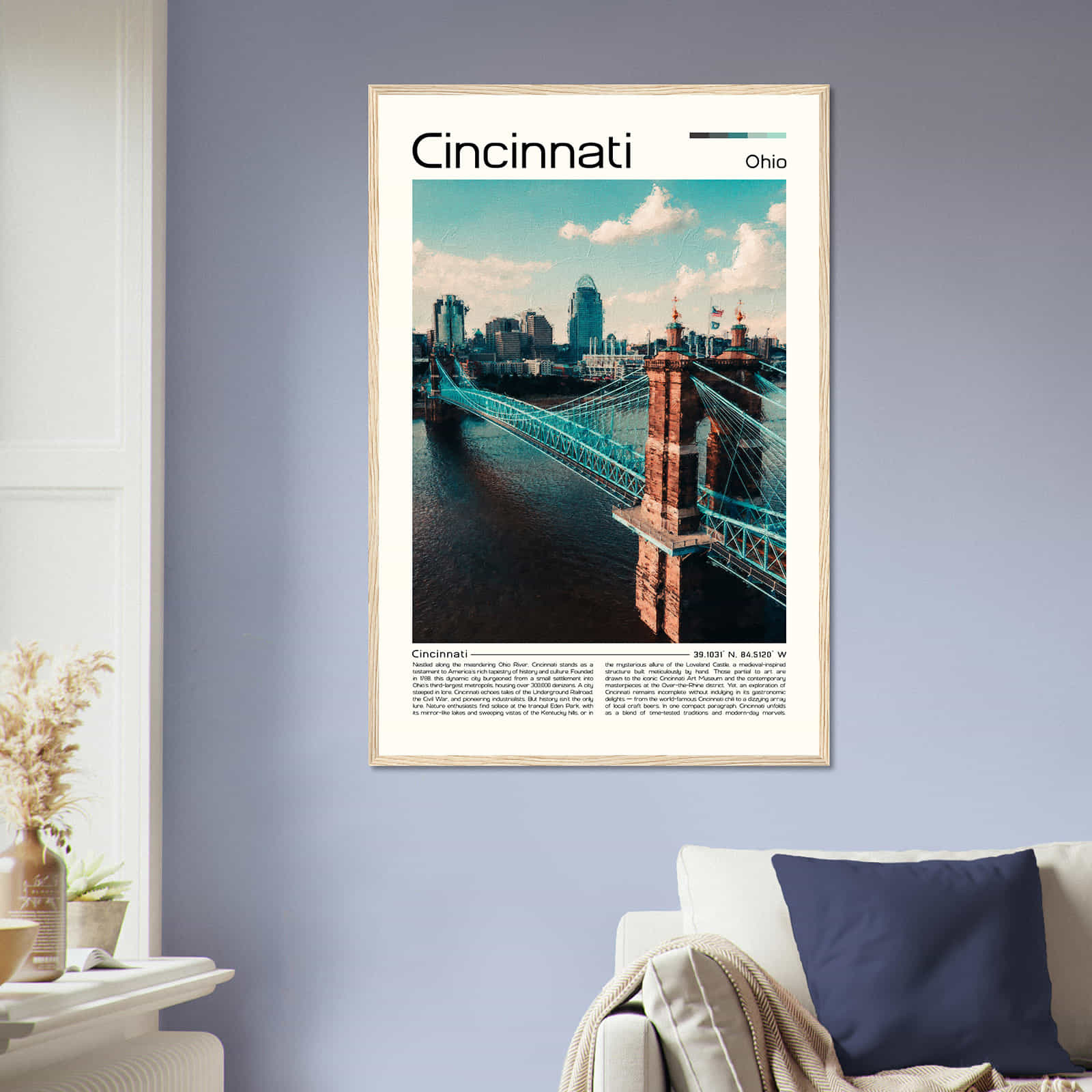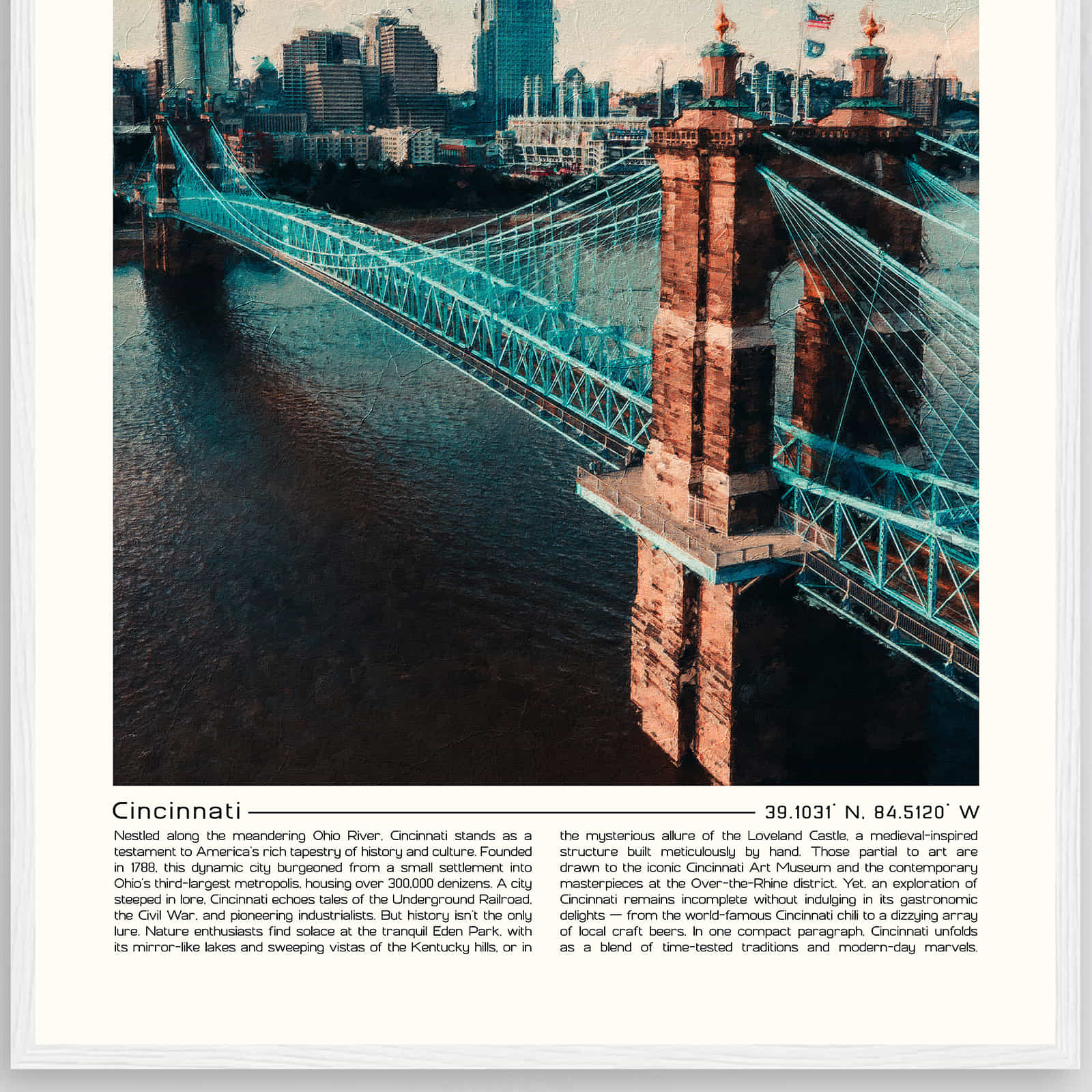 Cincinnati Ohio Cityscape Poster Print, Cincinnati Ohio Digital Oil Paint Poster DS-1