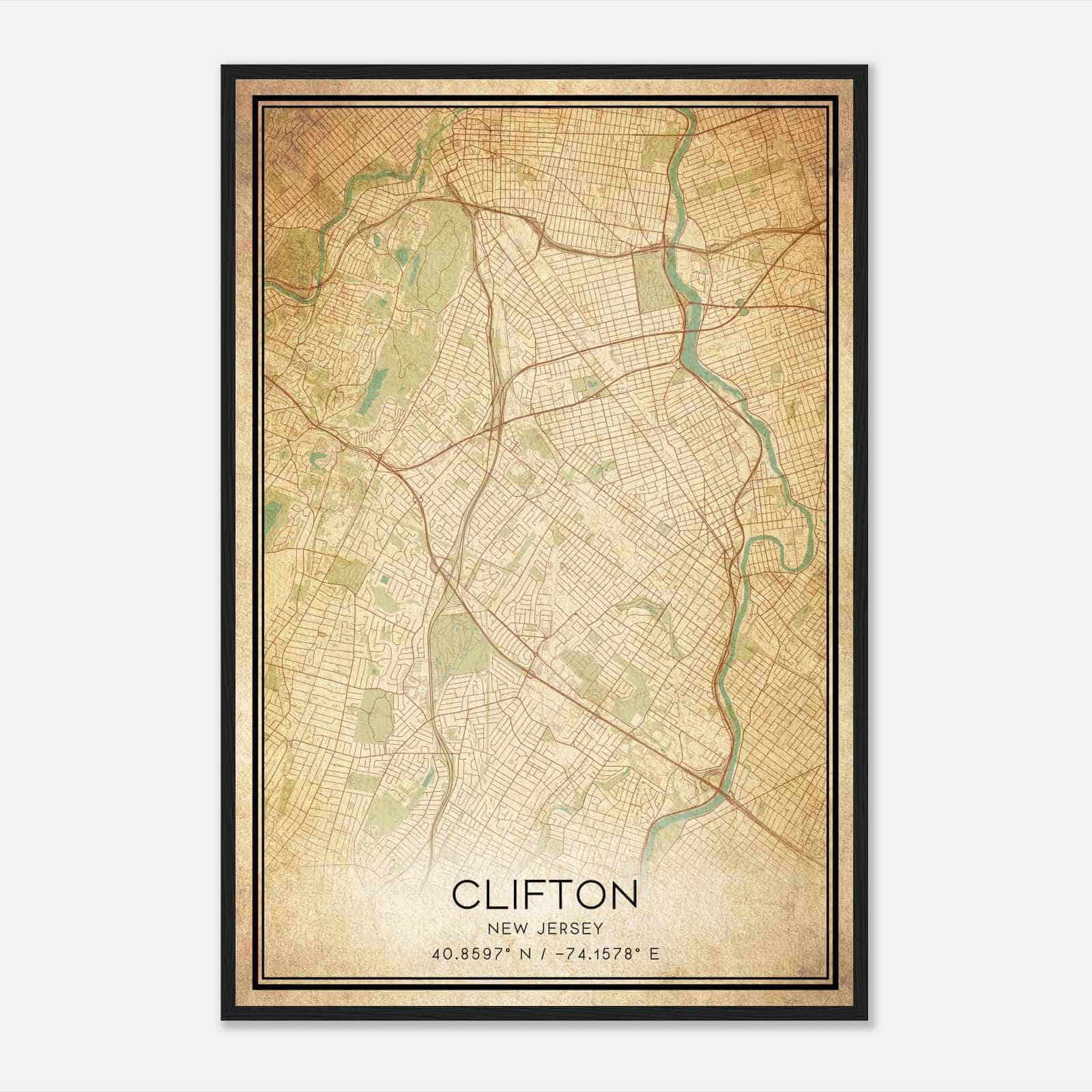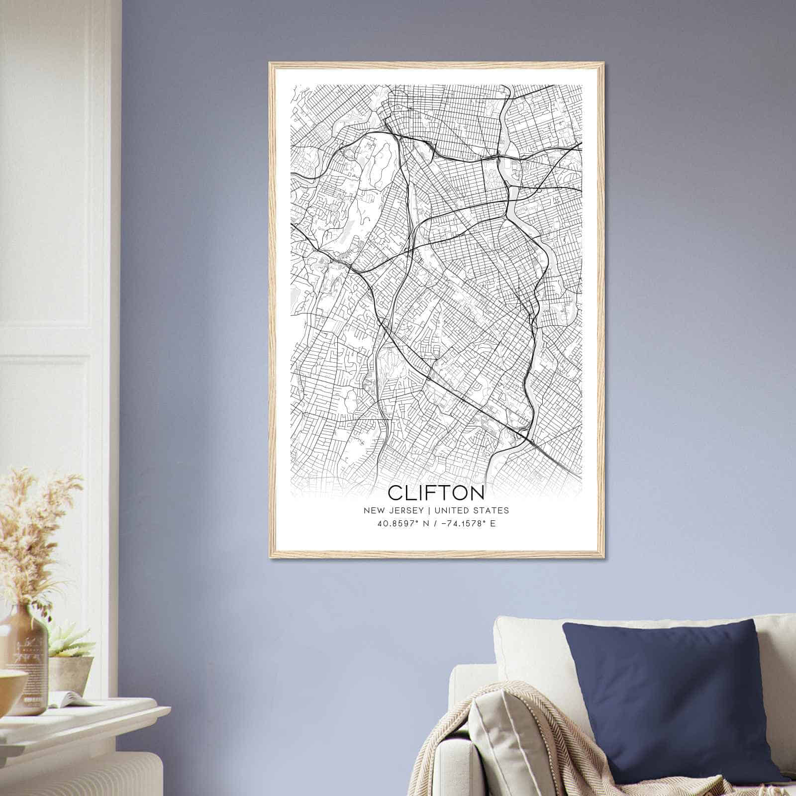 Clifton New Jersey Map Poster, Modern Home Decor Wall Art Print