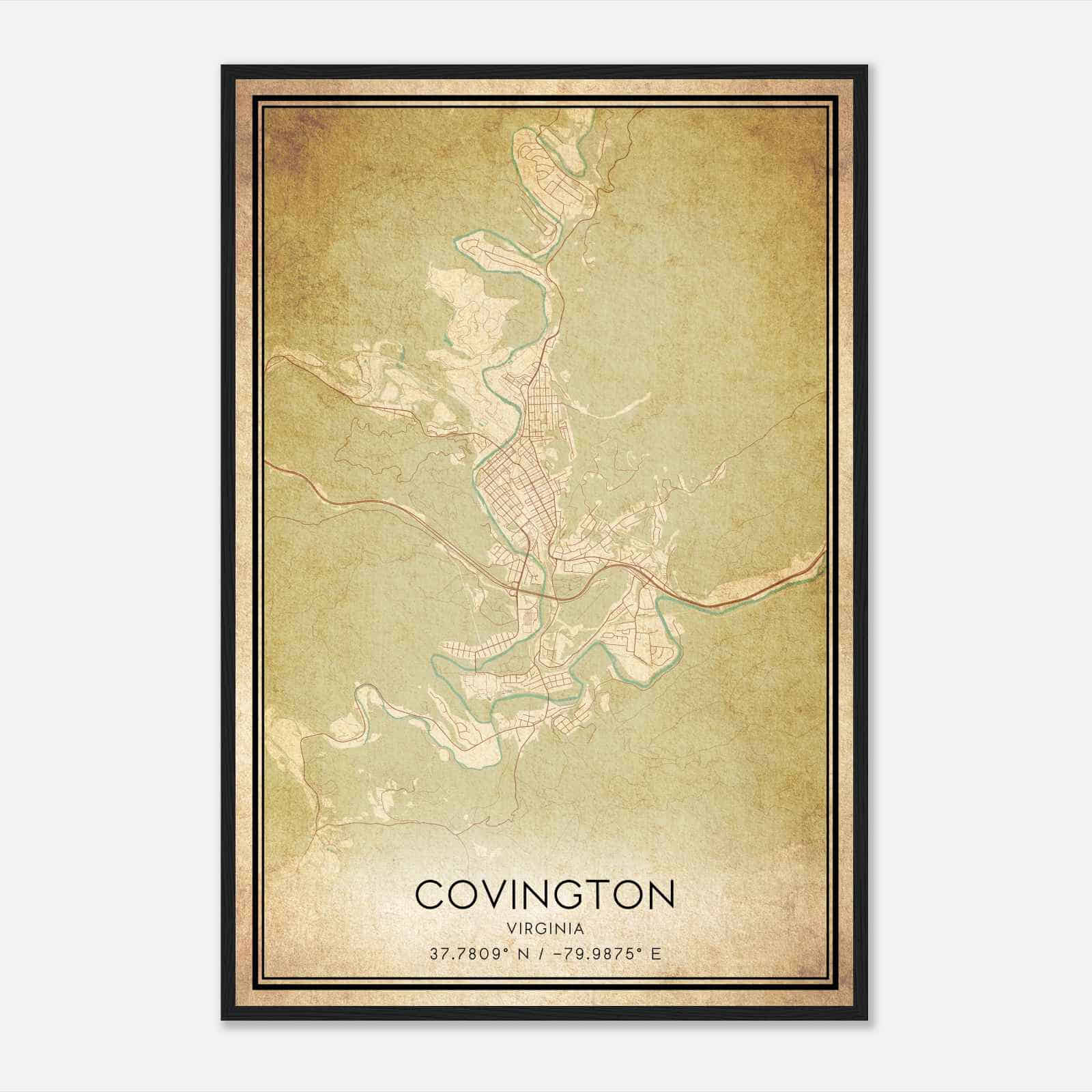 Covington Virginia Map Poster, Modern Home Decor Wall Art Print