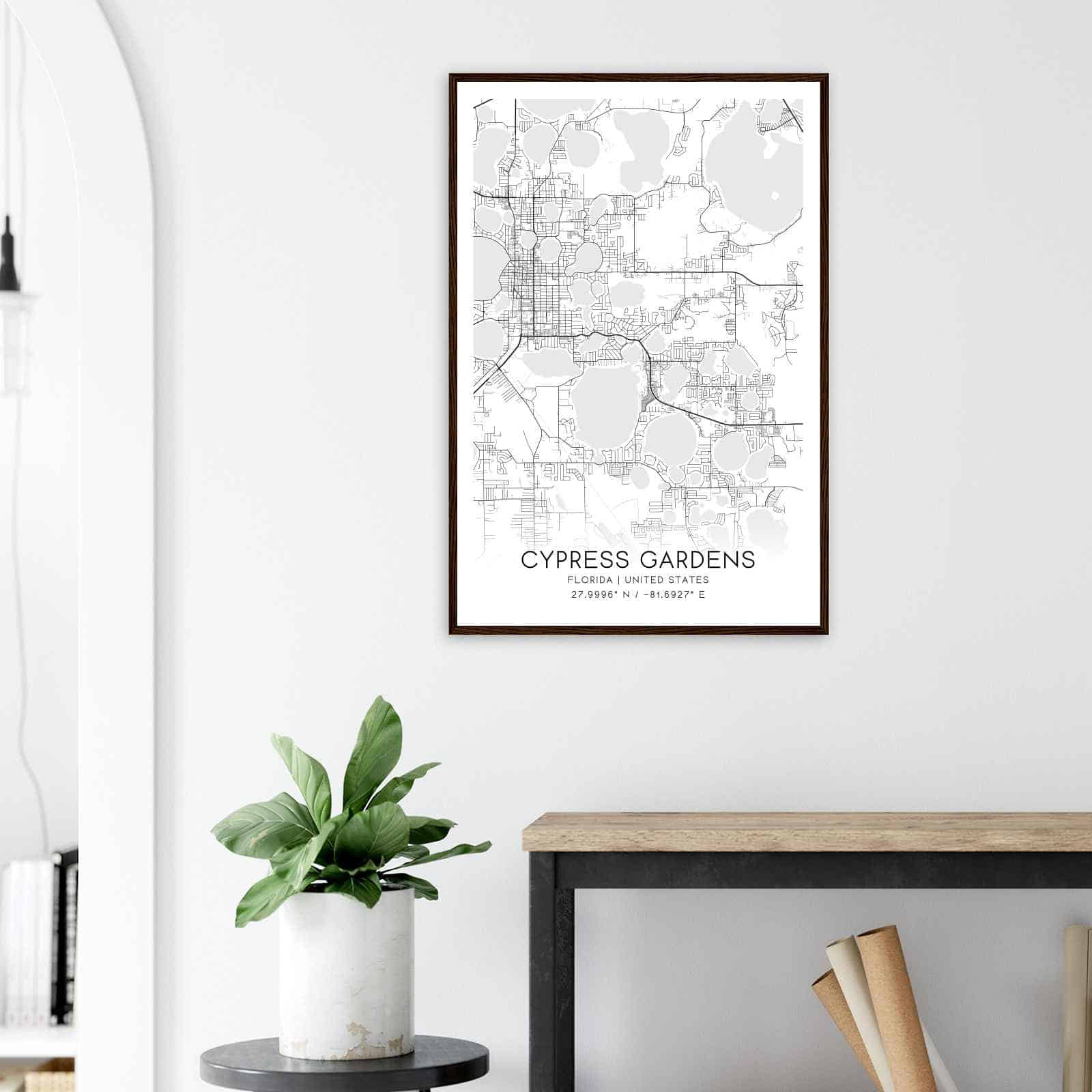 Transform your home decor with this stunning Cypress Gardens Map Poster. This high-quality paper print features a detailed street map of Cypress Gardens, making it a perfect addition to your modern home decor collection. Whether you’re born in Cypress Gardens or a visitor to the city, this map poster is a great way to explore and navigate the city.