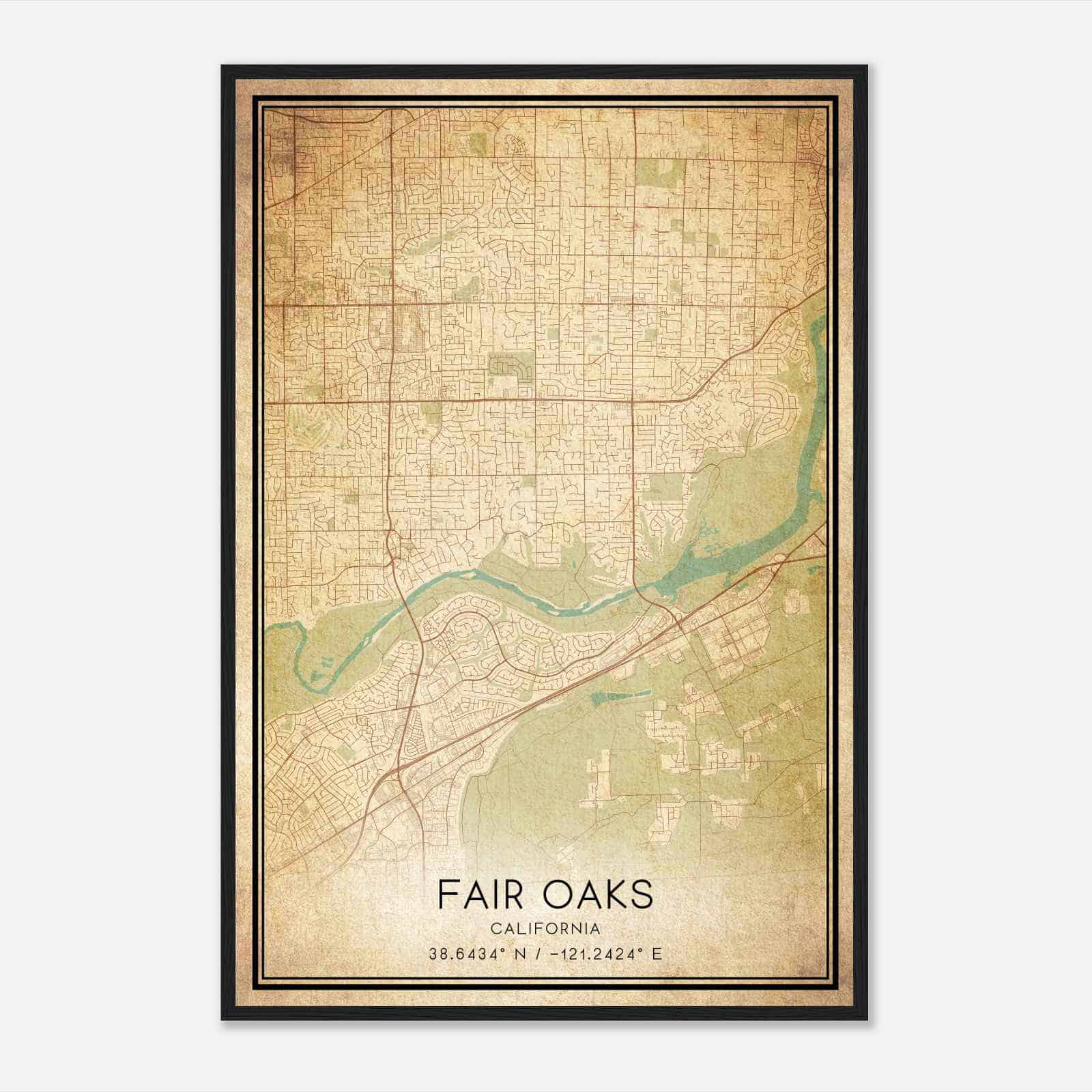 Fair Oaks California Map Poster, Modern Home Decor Wall Art Print