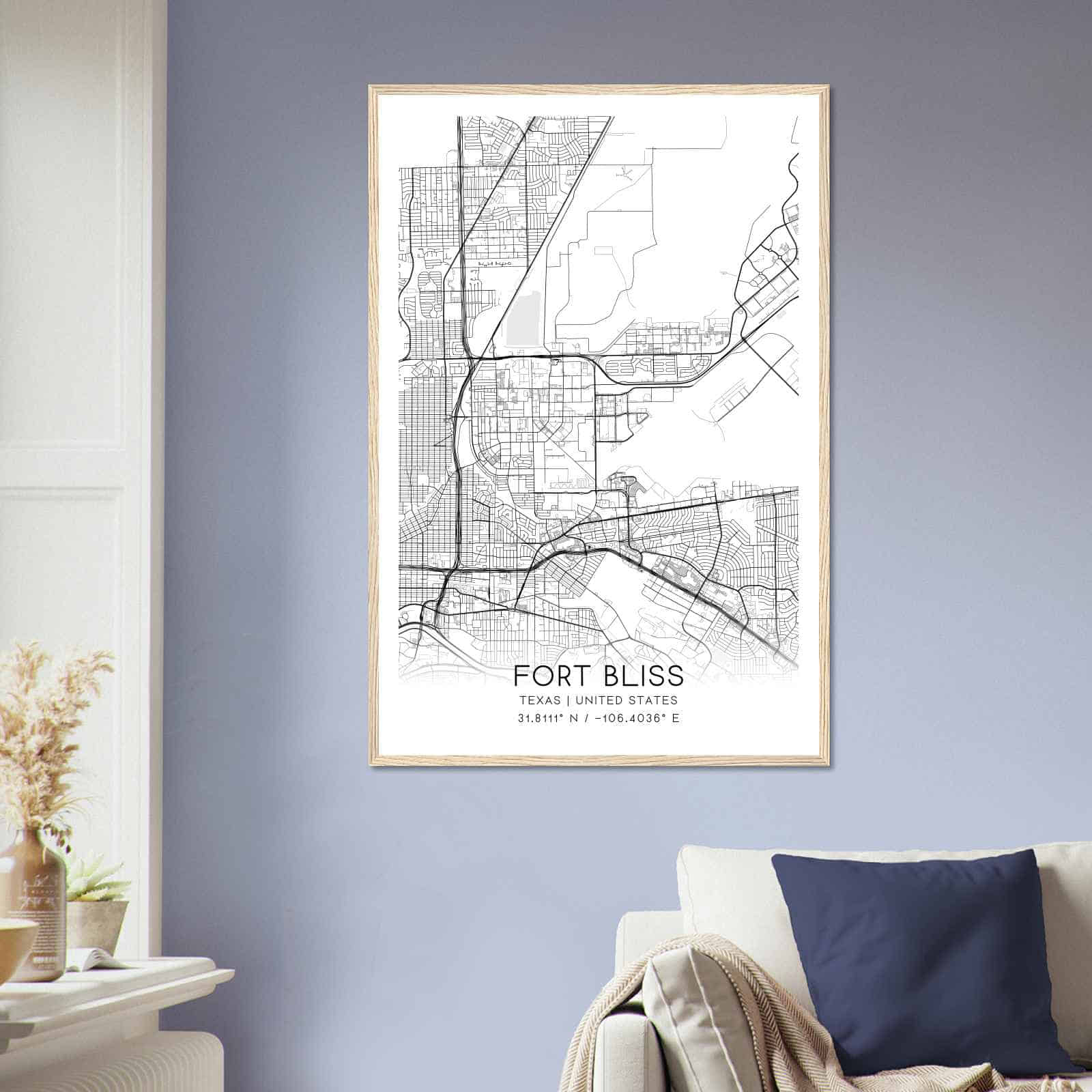 Transform your home decor with this stunning Fort Bliss Map Poster. This high-quality paper print features a detailed street map of Fort Bliss, making it a perfect addition to your modern home decor collection. Whether you’re born in Fort Bliss or a visitor to the city, this map poster is a great way to explore and navigate the city.