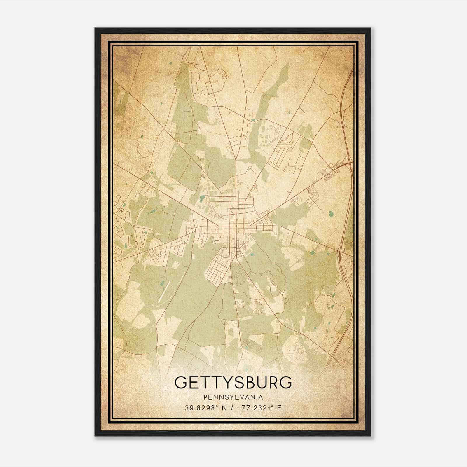 Transform your home decor with this stunning Gettysburg Map Poster. This high-quality paper print features a detailed street map of Gettysburg, making it a perfect addition to your modern home decor collection. Whether you’re born in Gettysburg or a visitor to the city, this map poster is a great way to explore and navigate the city.