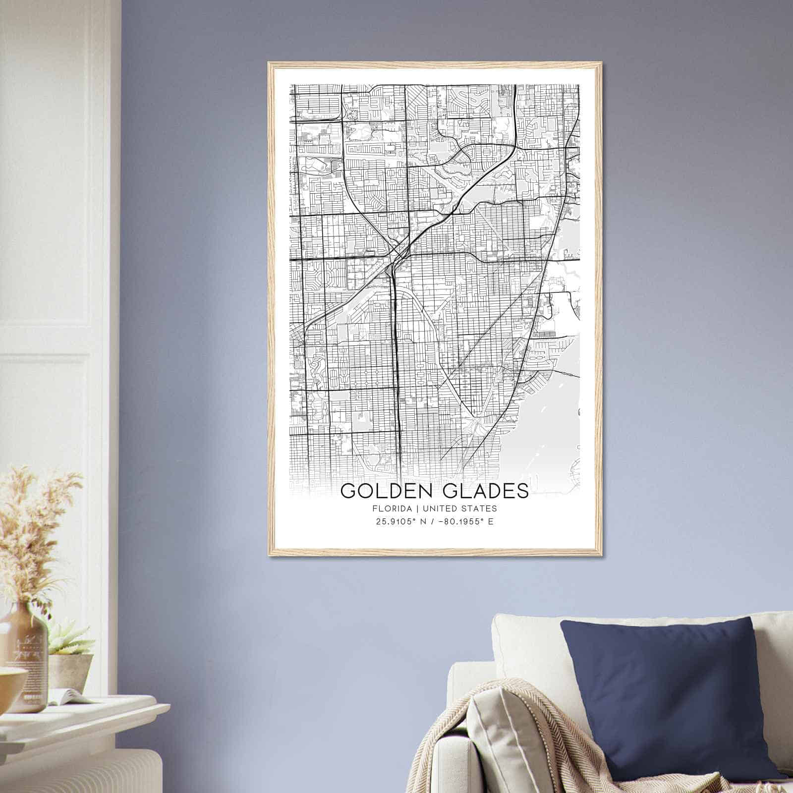 Transform your home decor with this stunning Golden Glades Map Poster. This high-quality paper print features a detailed street map of Golden Glades, making it a perfect addition to your modern home decor collection. Whether you’re born in Golden Glades or a visitor to the city, this map poster is a great way to explore and navigate the city.