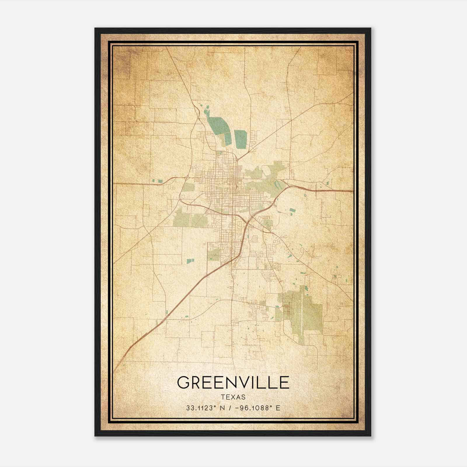 Greenville Texas Map Poster, Modern Home Decor Wall Art Print