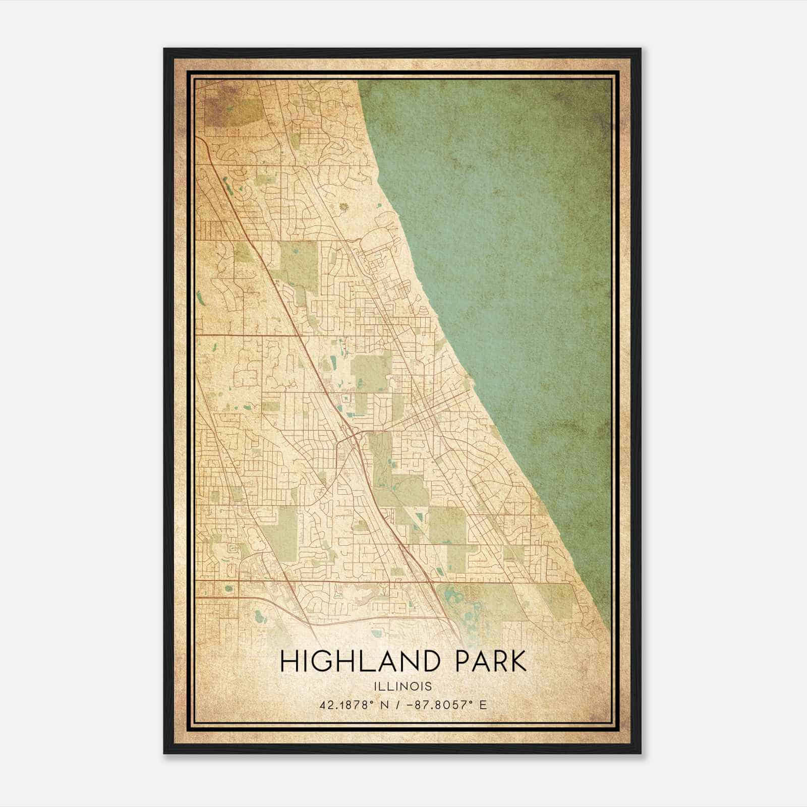 Highland Park Illinois Map Poster, Modern Home Decor Wall Art Print