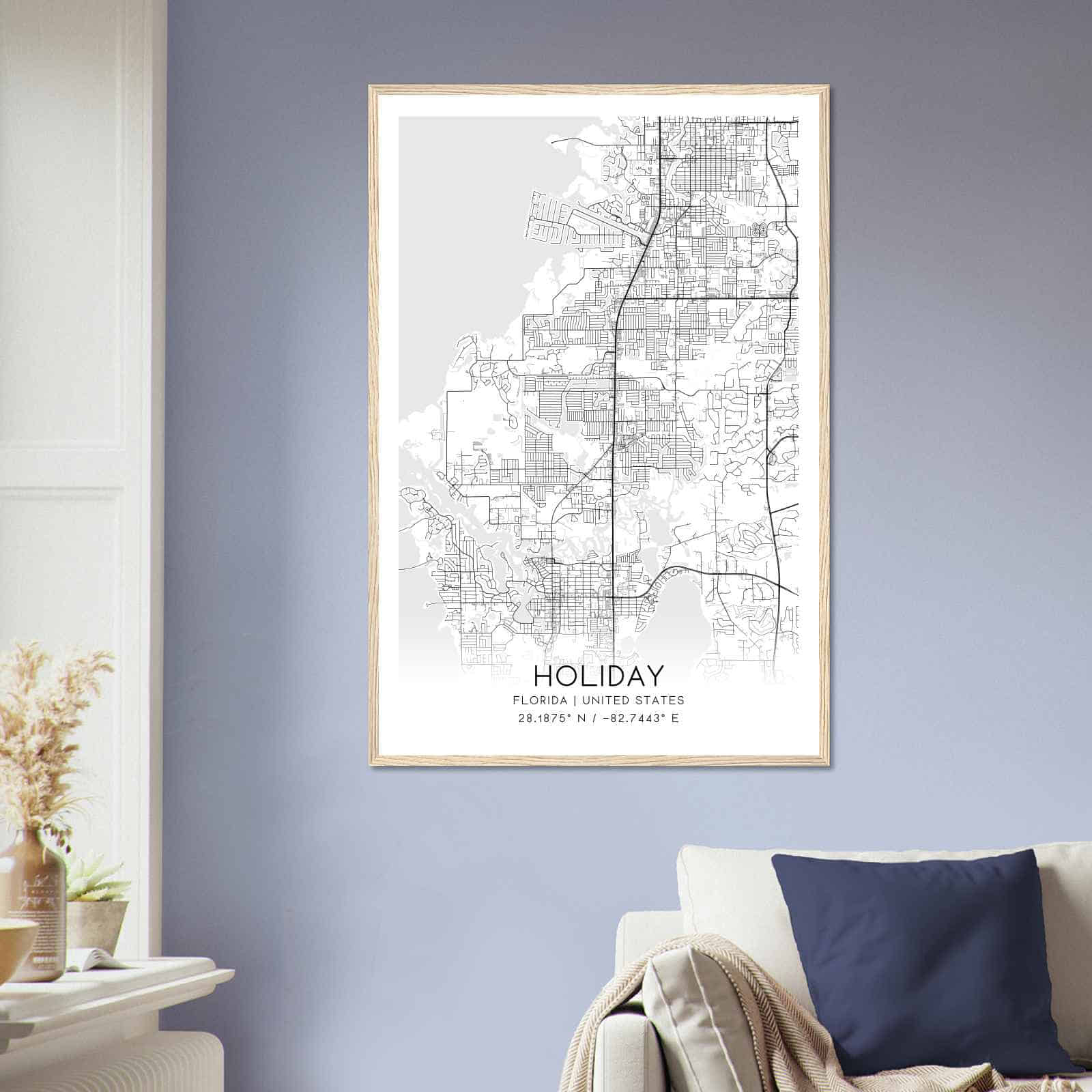 Transform your home decor with this stunning Holiday Map Poster. This high-quality paper print features a detailed street map of Holiday, making it a perfect addition to your modern home decor collection. Whether you’re born in Holiday or a visitor to the city, this map poster is a great way to explore and navigate the city.