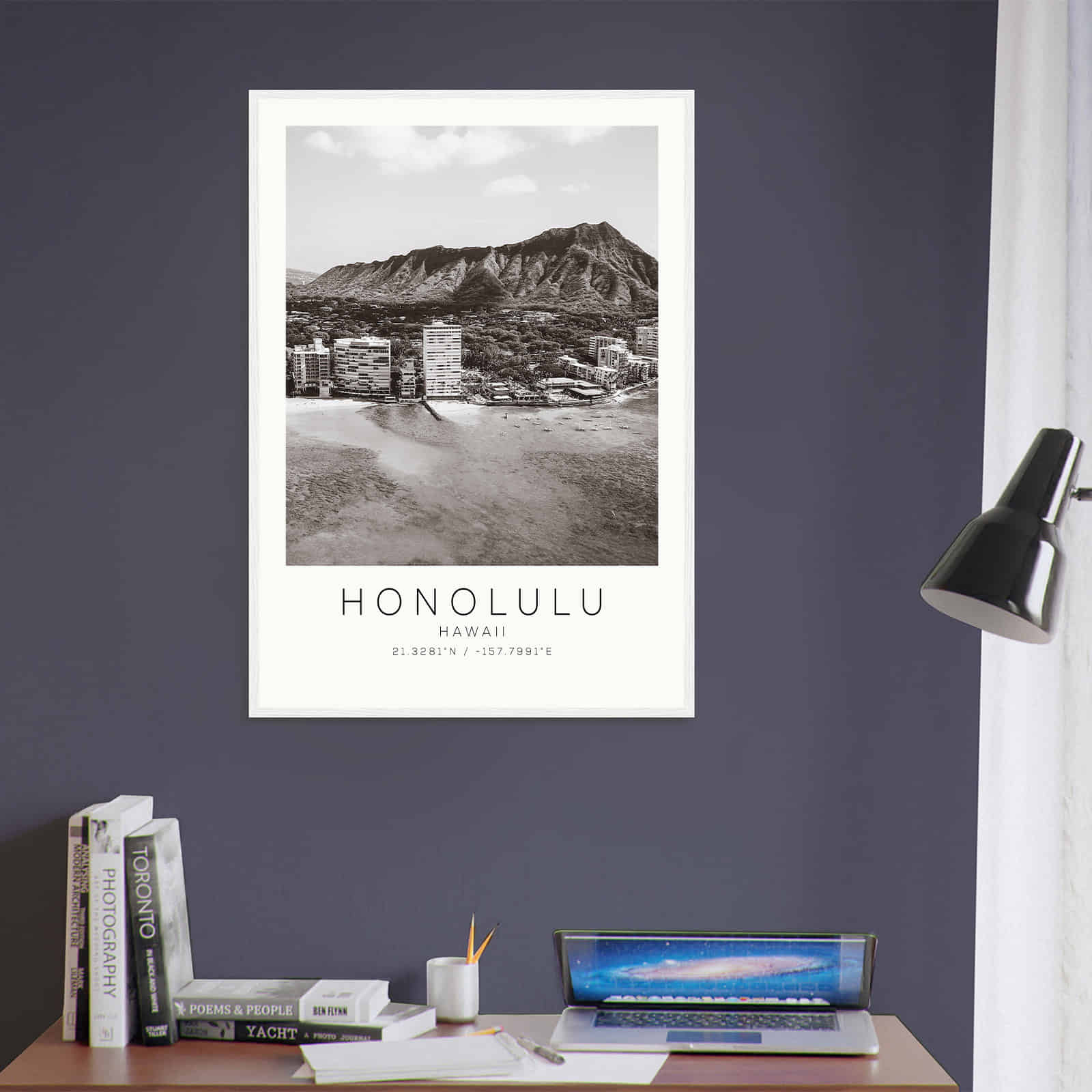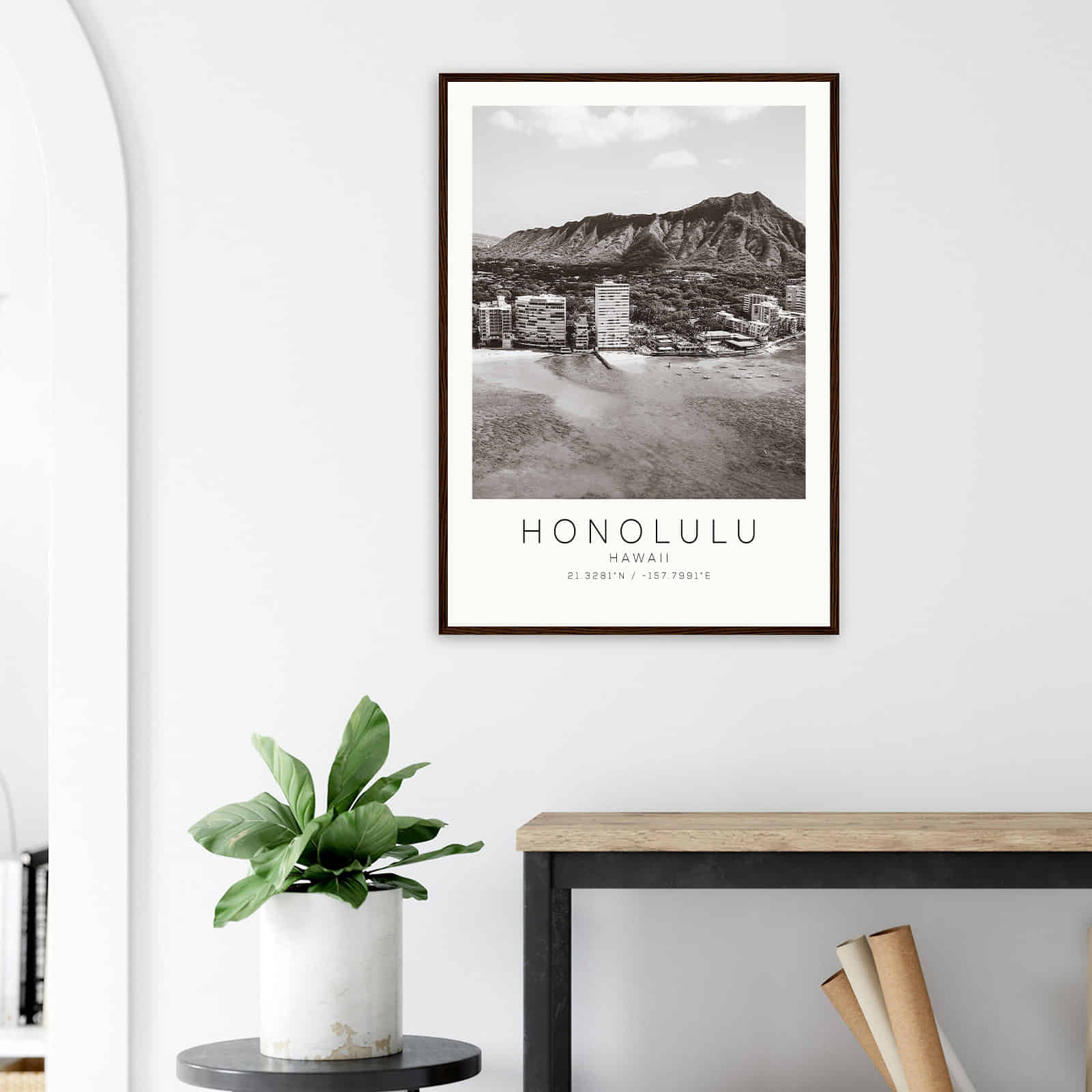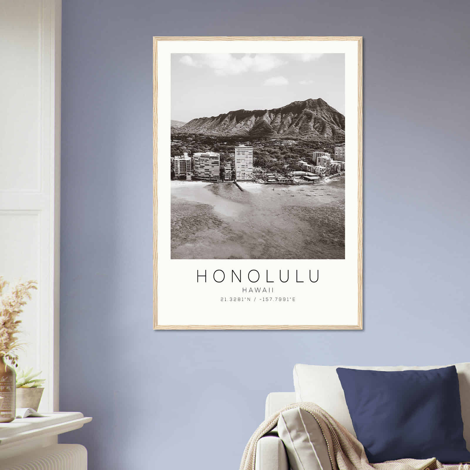 Honolulu Hawaii DS5 Photo Travel Poster BW, Honolulu Hawaii Travel Print, Minimalist Travel Print