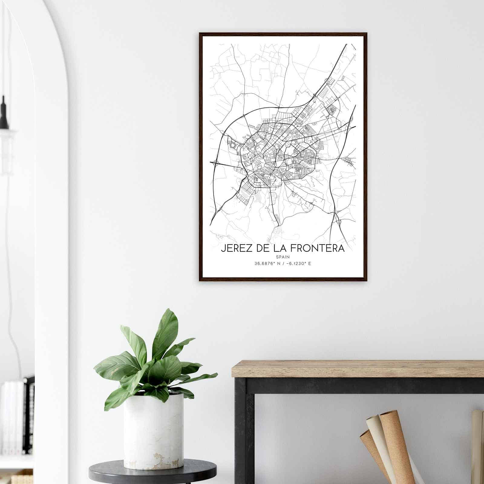 Transform your home decor with this stunning Jerez de la Frontera Map Poster. This high-quality paper print features a detailed street map of Jerez de la Frontera, making it a perfect addition to your modern home decor collection. Whether you’re born in Jerez de la Frontera or a visitor to the city, this map poster is a great way to explore and navigate the city.