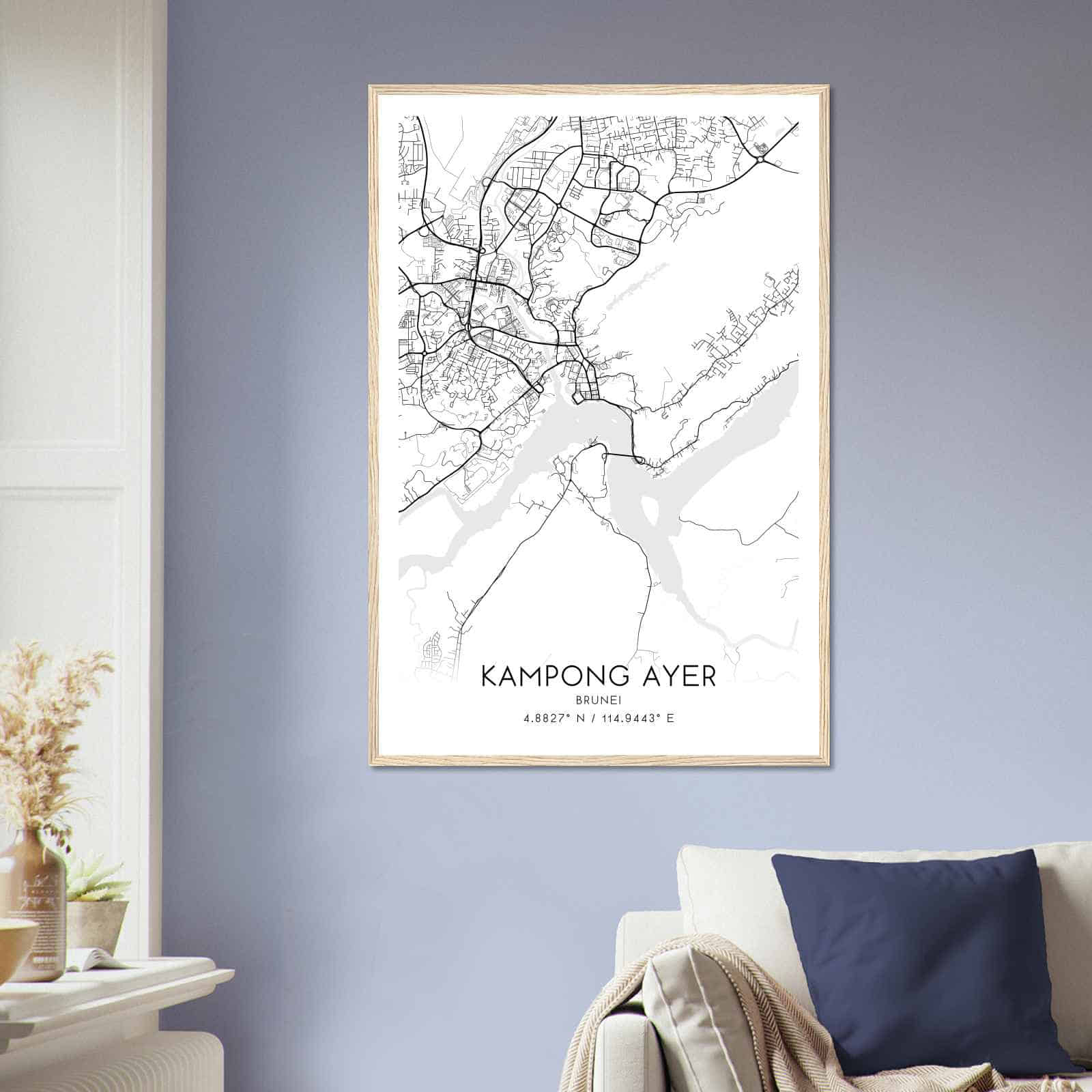 Transform your home decor with this stunning Kampong Ayer Map Poster. This high-quality paper print features a detailed street map of Kampong Ayer, making it a perfect addition to your modern home decor collection. Whether you’re born in Kampong Ayer or a visitor to the city, this map poster is a great way to explore the city.