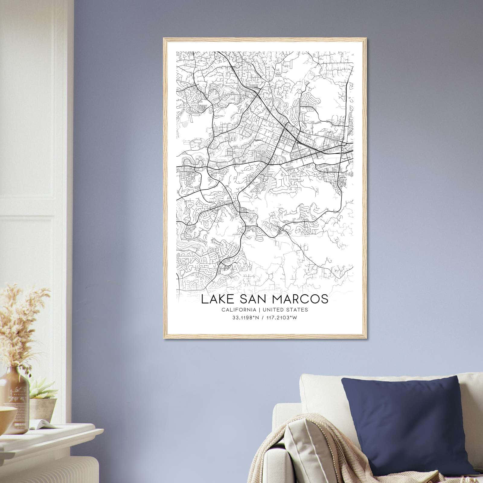 Transform your home decor with this stunning Lake San Marcos Map Poster. This high-quality paper print features a detailed street map of Lake San Marcos, making it a perfect addition to your modern home decor collection. Whether you’re born in Lake San Marcos or a visitor to the city, this map poster is a great way to explore and navigate the city.