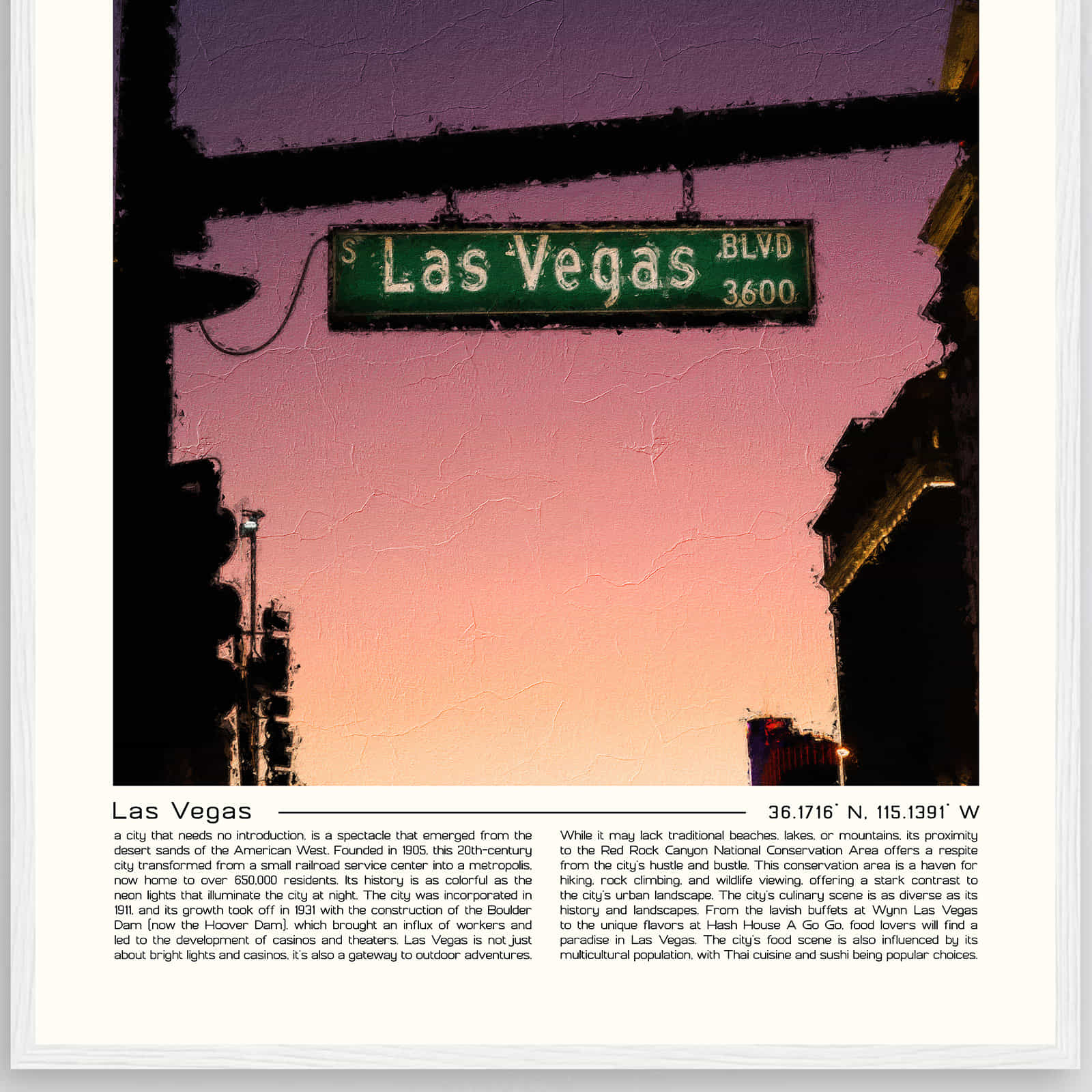Las Vegas Nevada digital oil painting wall art is created using a high-tech process that combines the beauty of traditional oil painting with the convenience of digital technology. This process allows artists to create detailed and realistic paintings that are still affordable and easy to care for.
