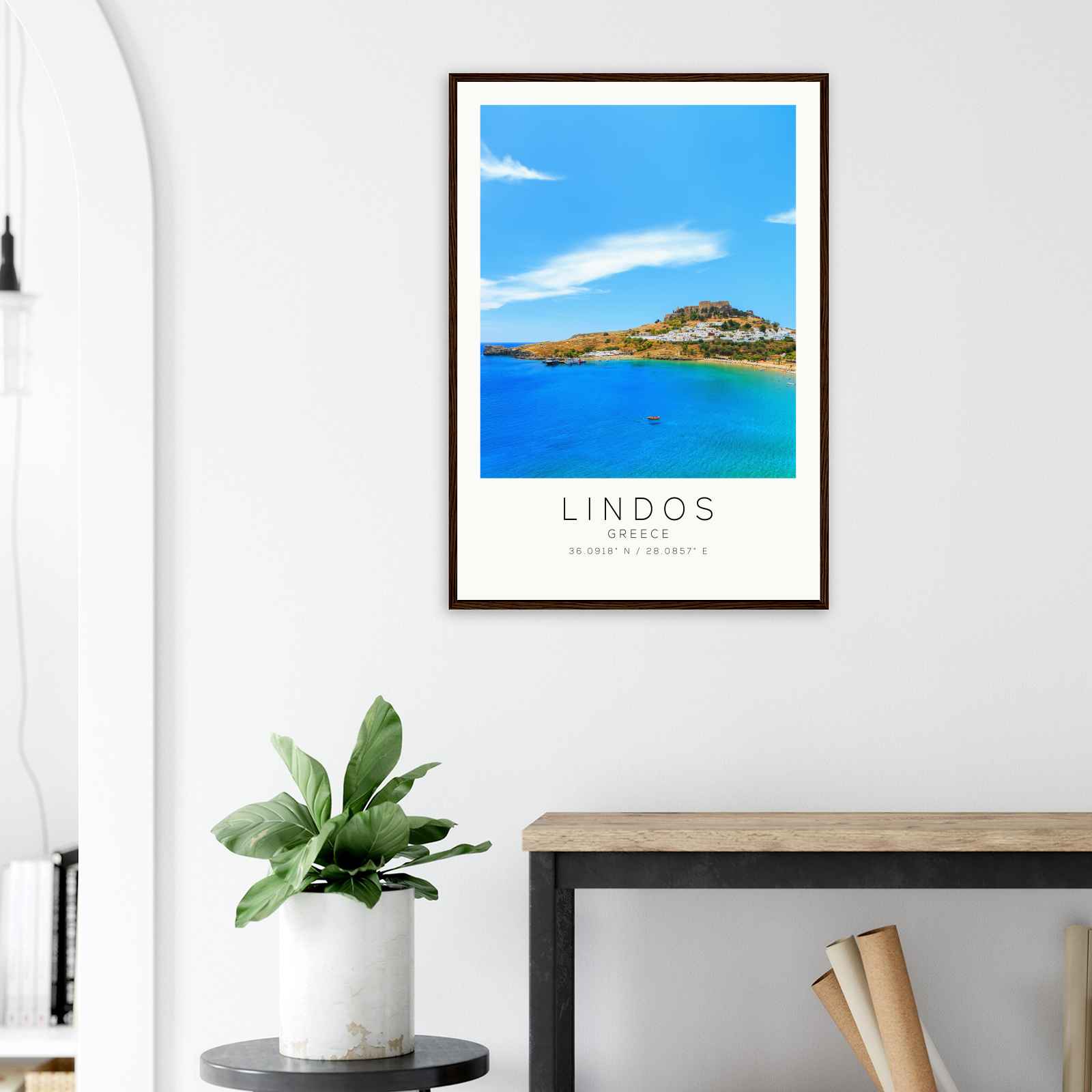 Lindos Greece Travel Photo Poster, Lindos Travel Print, Minimalist Travel Poster Print DS2