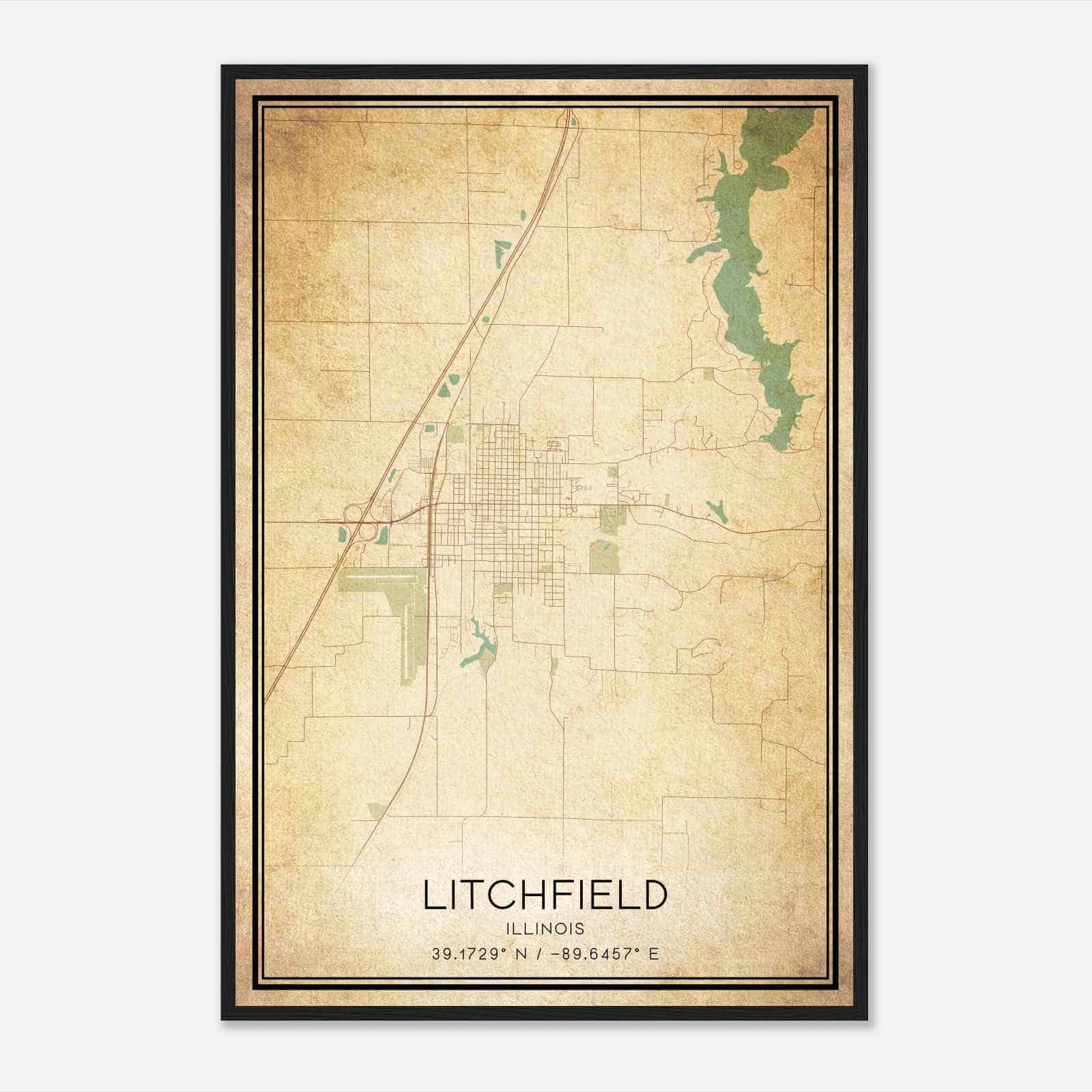 Litchfield Illinois Map Poster, Modern Home Decor Wall Art Print