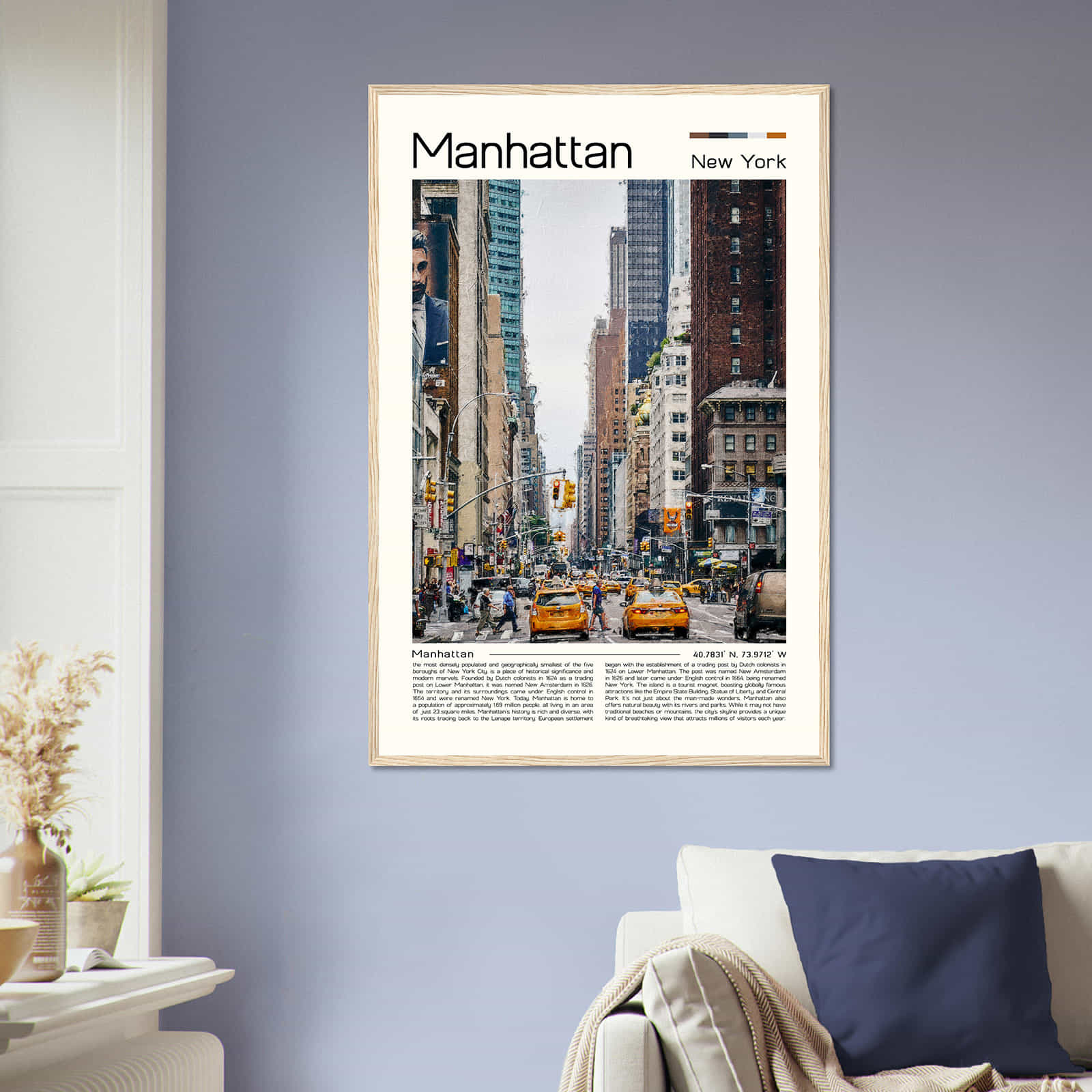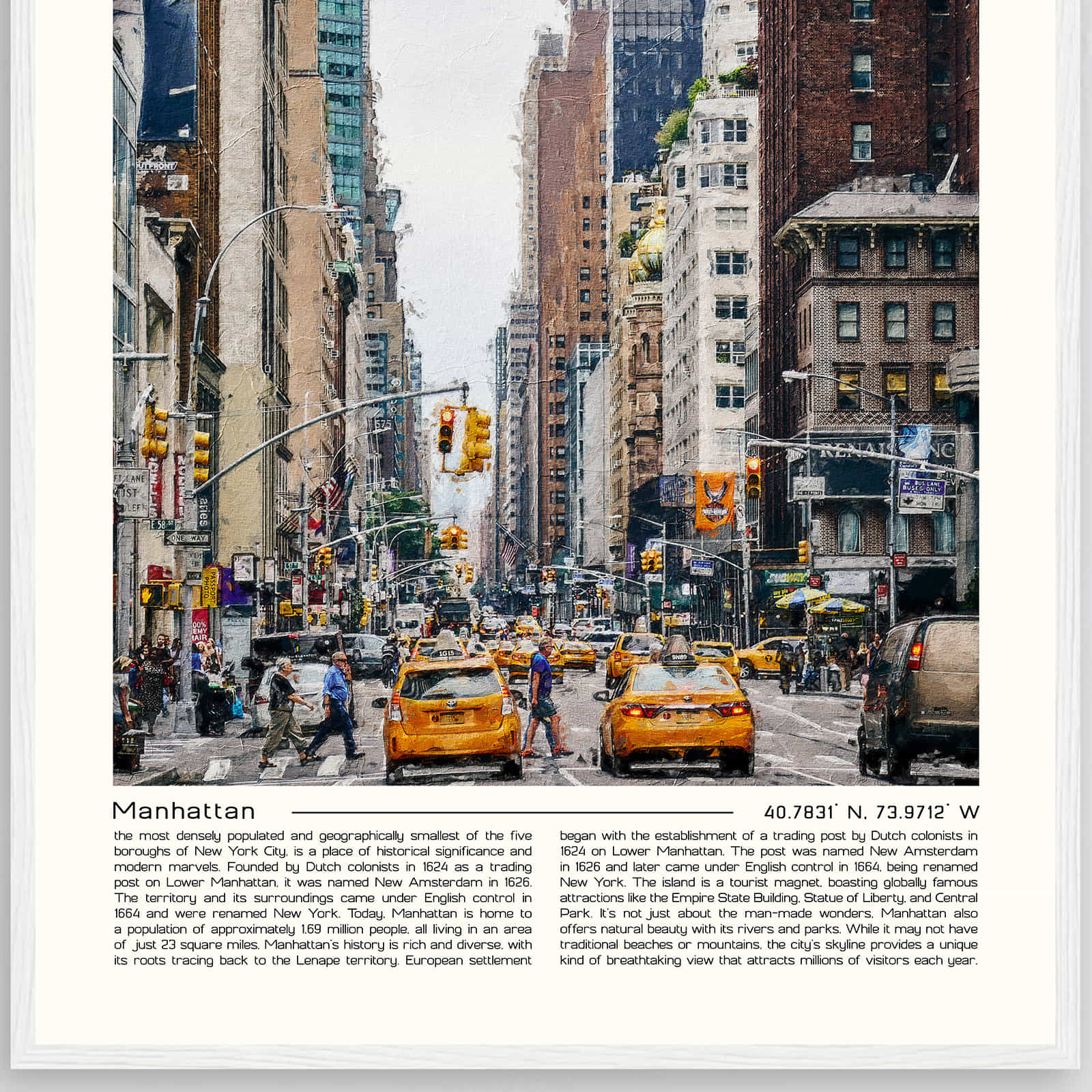 Manhattan New York Cityscape Poster Print, Manhattan New York Digital Oil Paint Poster DS-3