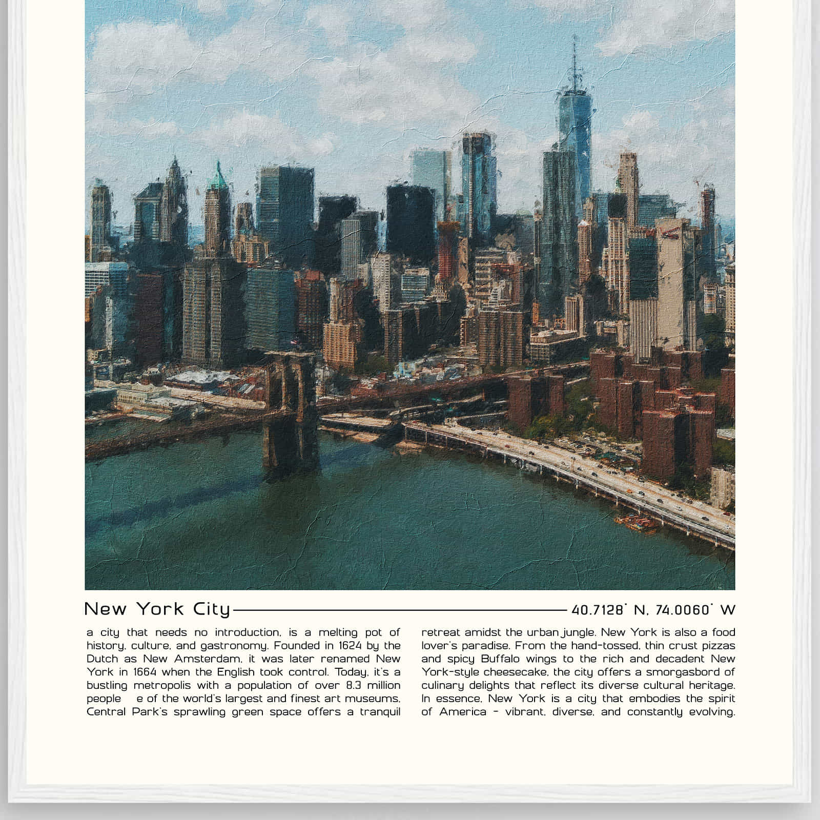 New York City New York Cityscape Poster Print, New York City New York Digital Oil Paint Poster DS-3
