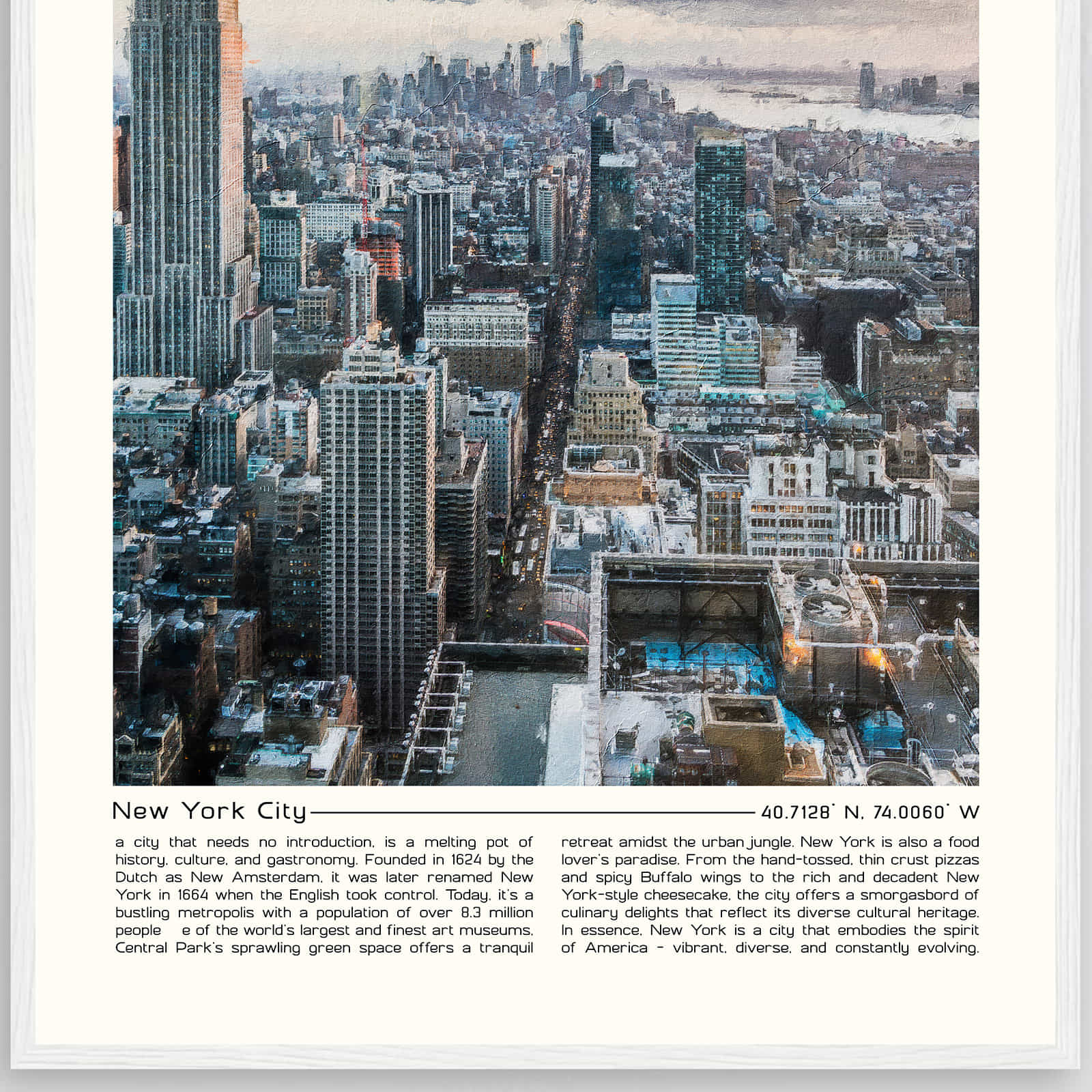 New York City New York Cityscape Poster Print, New York City New York Digital Oil Paint Poster DS-9