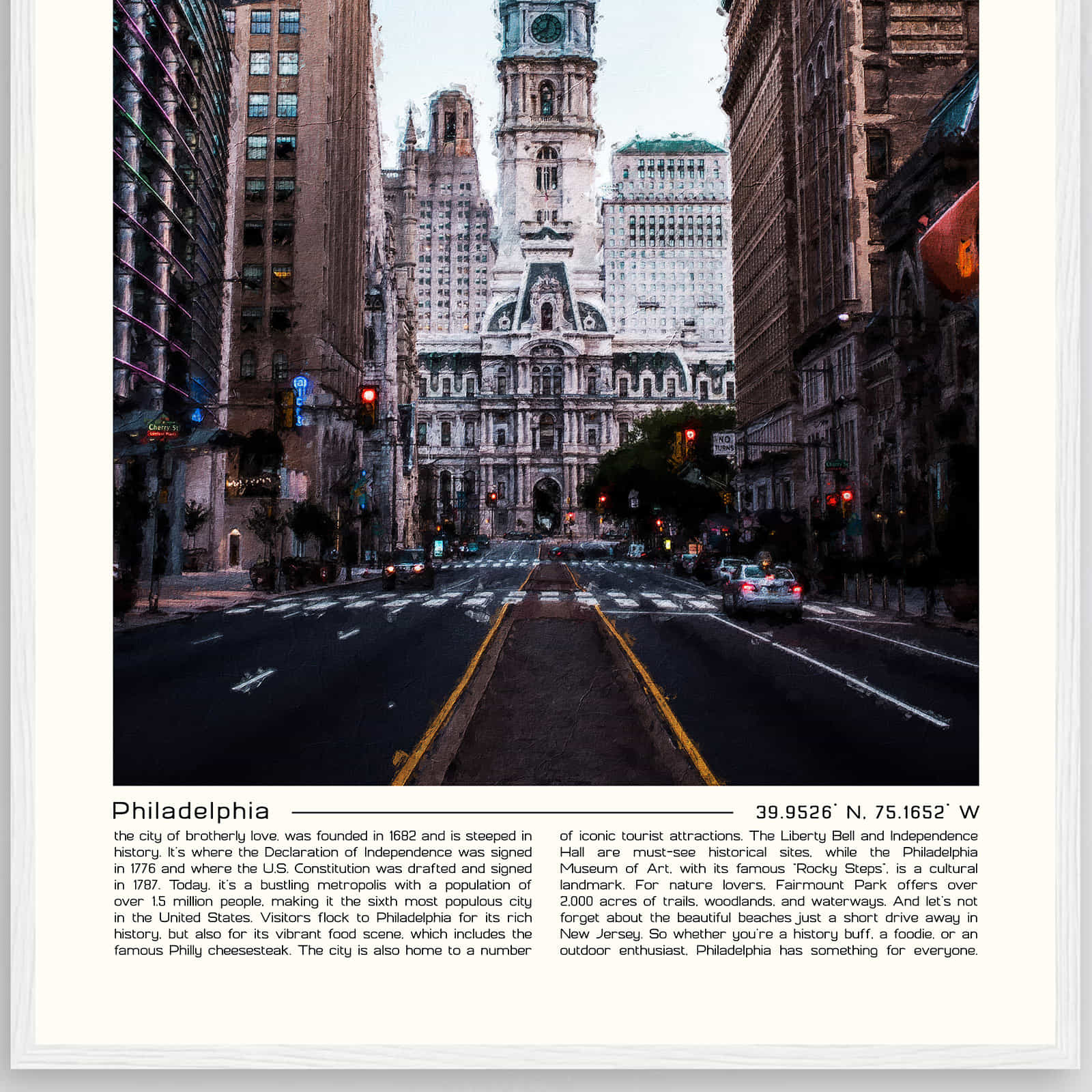 Philadelphia, Pennsylvania digital oil painting wall art is created using a high-tech process that combines the beauty of traditional oil painting with the convenience of digital technology. This process allows artists to create detailed and realistic paintings that are still affordable and easy to care for.