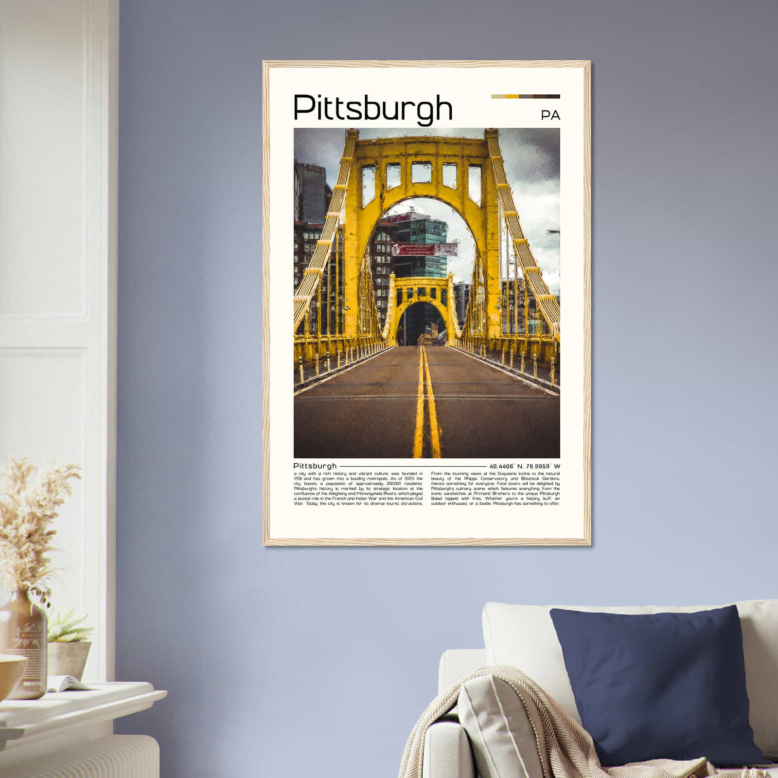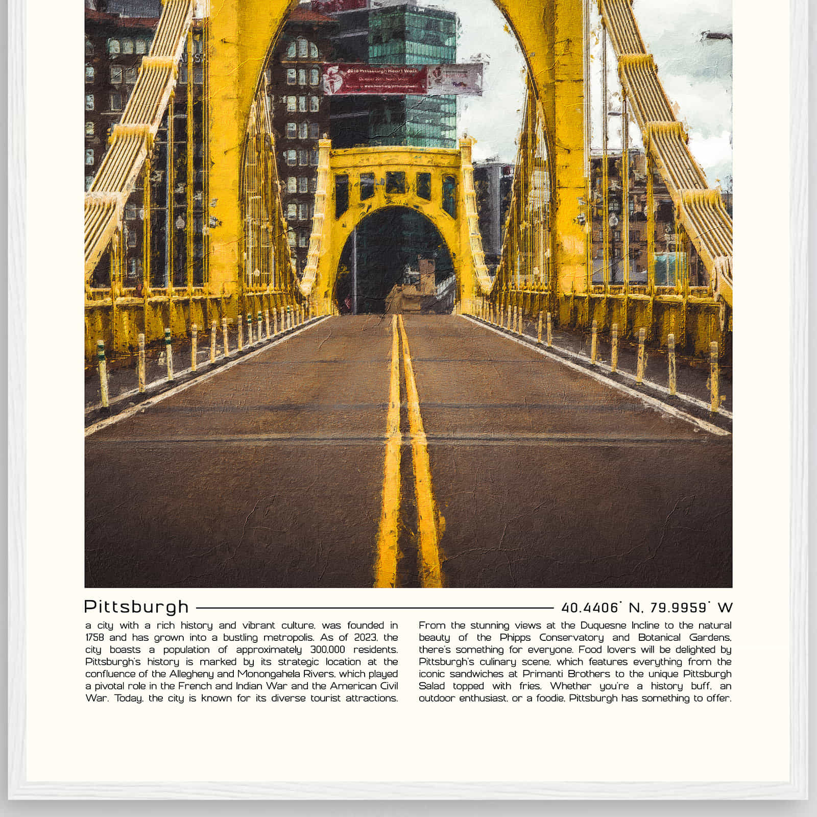 Pittsburgh Pennsylvania Cityscape Poster Print, Pittsburgh Pennsylvania Digital Oil Paint Poster DS-3