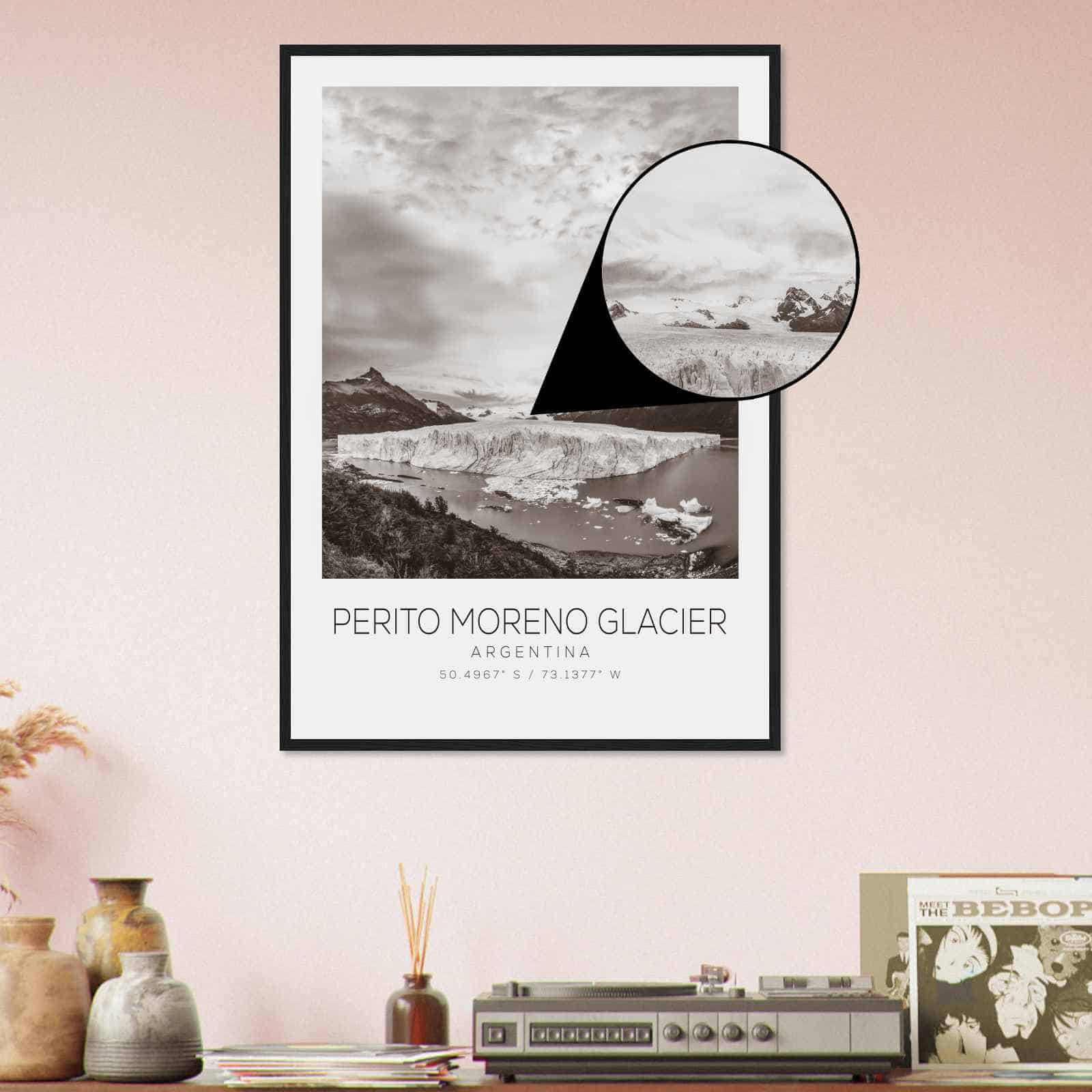 Perito Moreno Glacier Argentina Travel Photo Poster BW, Perito Moreno Glacier Travel Print, Minimalist Travel Poster Print