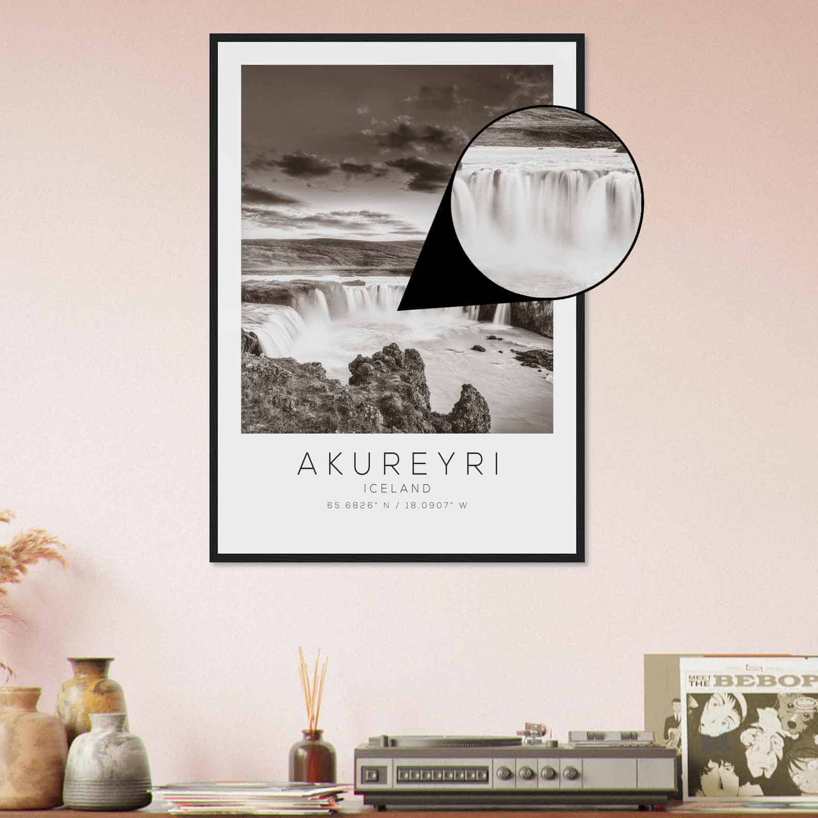 Akureyri Iceland Travel Photo Poster BW, Akureyri Travel Print, Minimalist Travel Poster Print