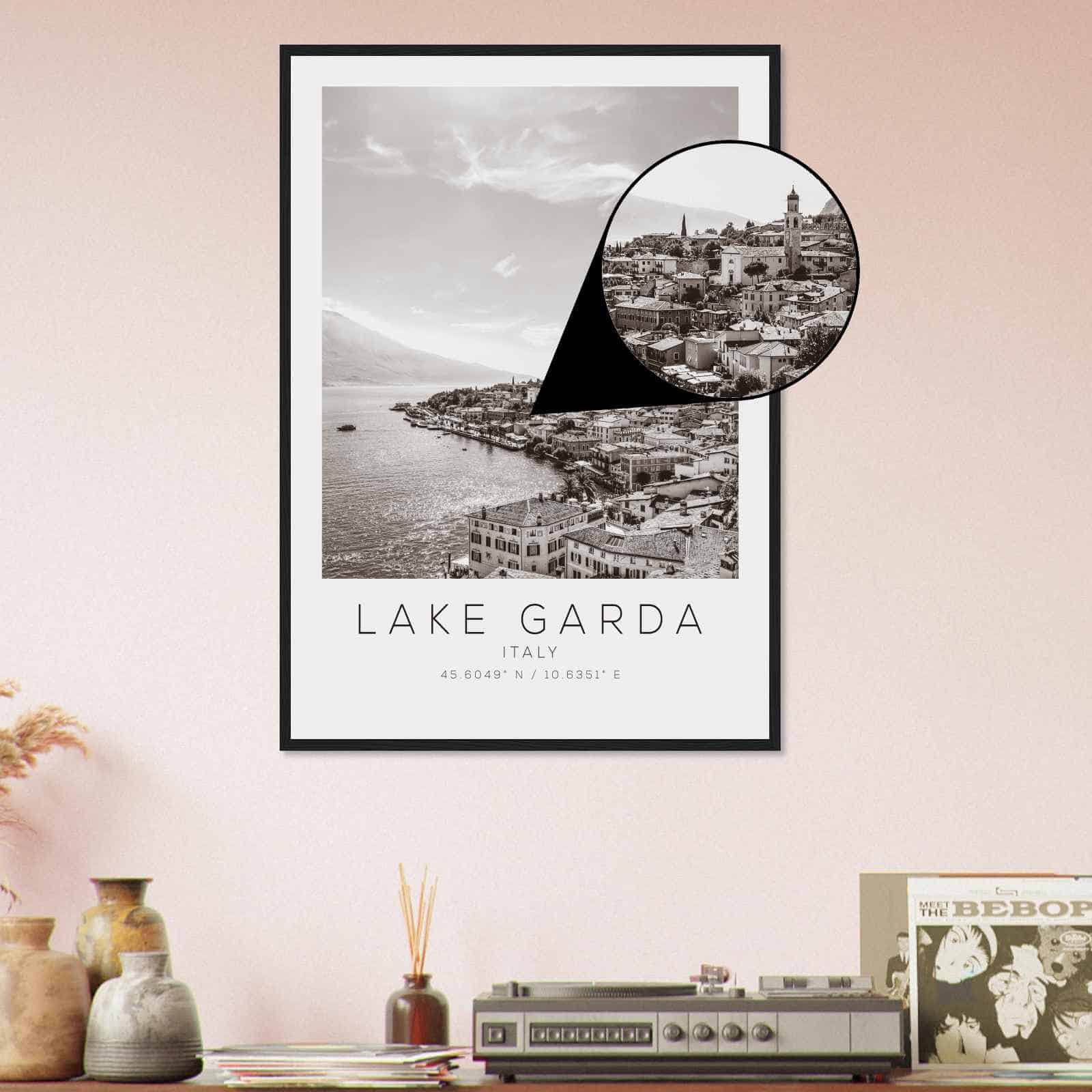 Lake Garda Italy Travel Photo Poster BW, Lake Garda Travel Print, Minimalist Travel Poster Print