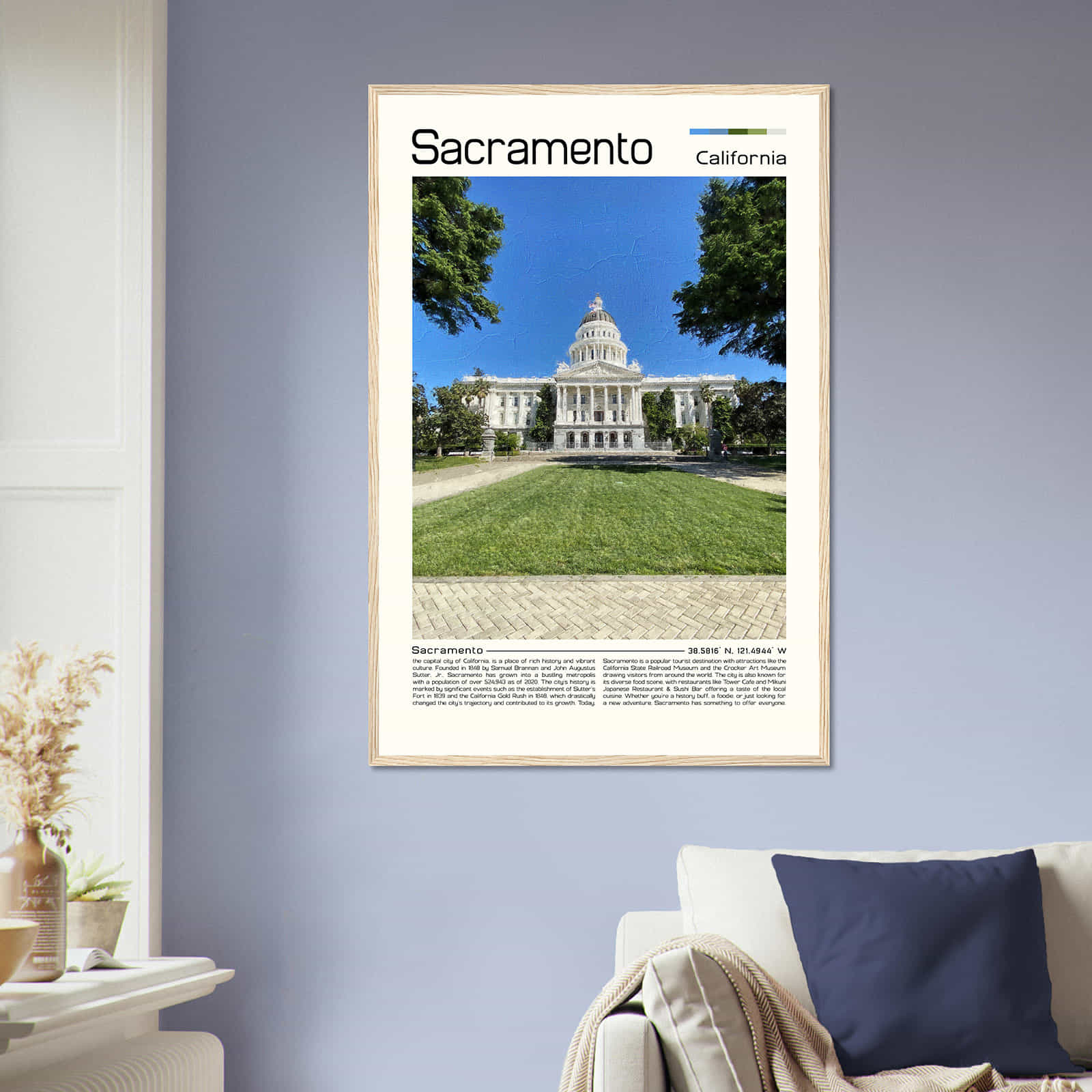 Sacramento California Cityscape Poster Print, Sacramento California Digital Oil Paint Poster DS-1