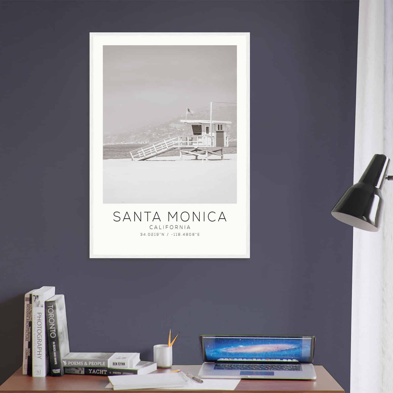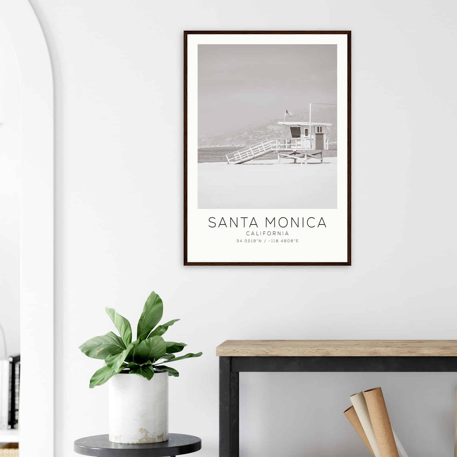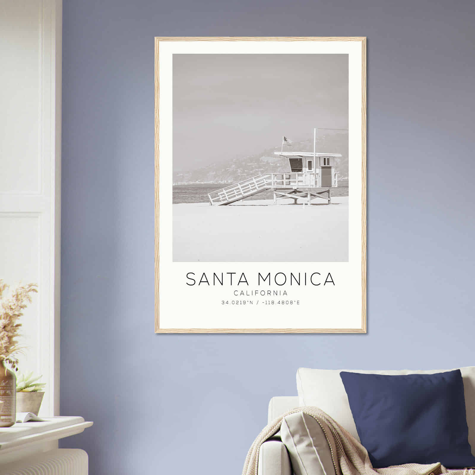 Santa Monica California Photo Travel Poster BW, Santa Monica Travel Print, Minimalist Travel Print