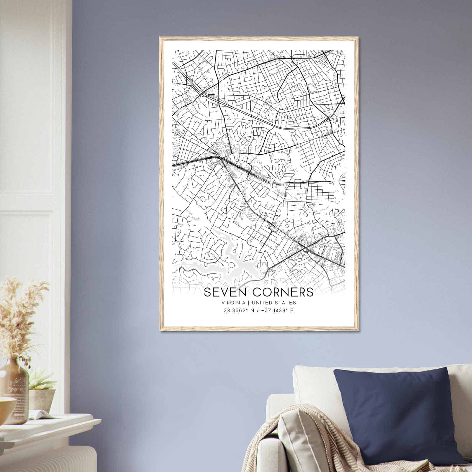 Transform your home decor with this stunning Seven Corners Map Poster. This high-quality paper print features a detailed street map of Seven Corners, making it a perfect addition to your modern home decor collection. Whether you’re born in Seven Corners or a visitor to the city, this map poster is a great way to explore and navigate the city.