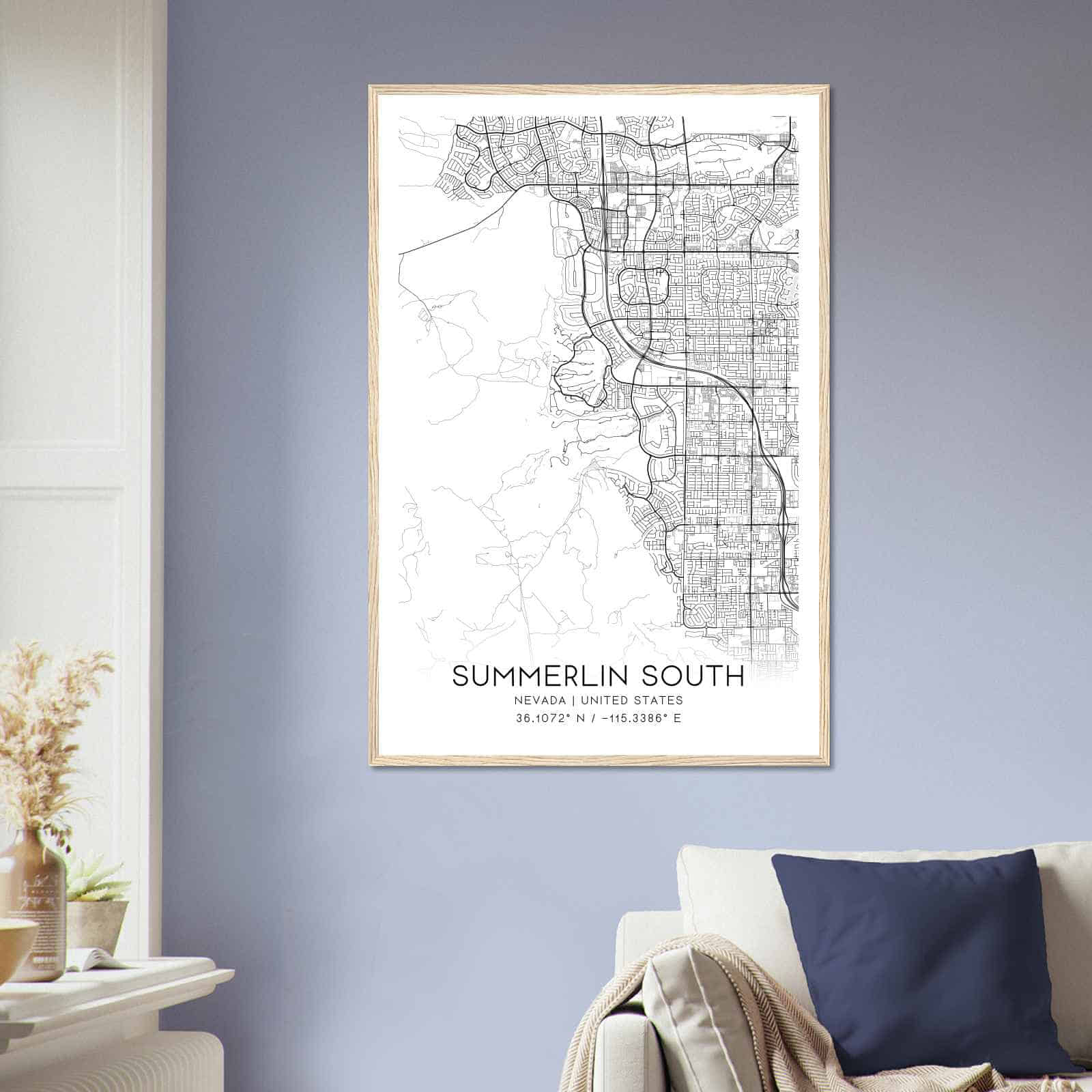 Transform your home decor with this stunning Summerlin South Map Poster. This high-quality paper print features a detailed street map of Summerlin South, making it a perfect addition to your modern home decor collection. Whether you’re born in Summerlin South or a visitor to the city, this map poster is a great way to explore and navigate the city.
