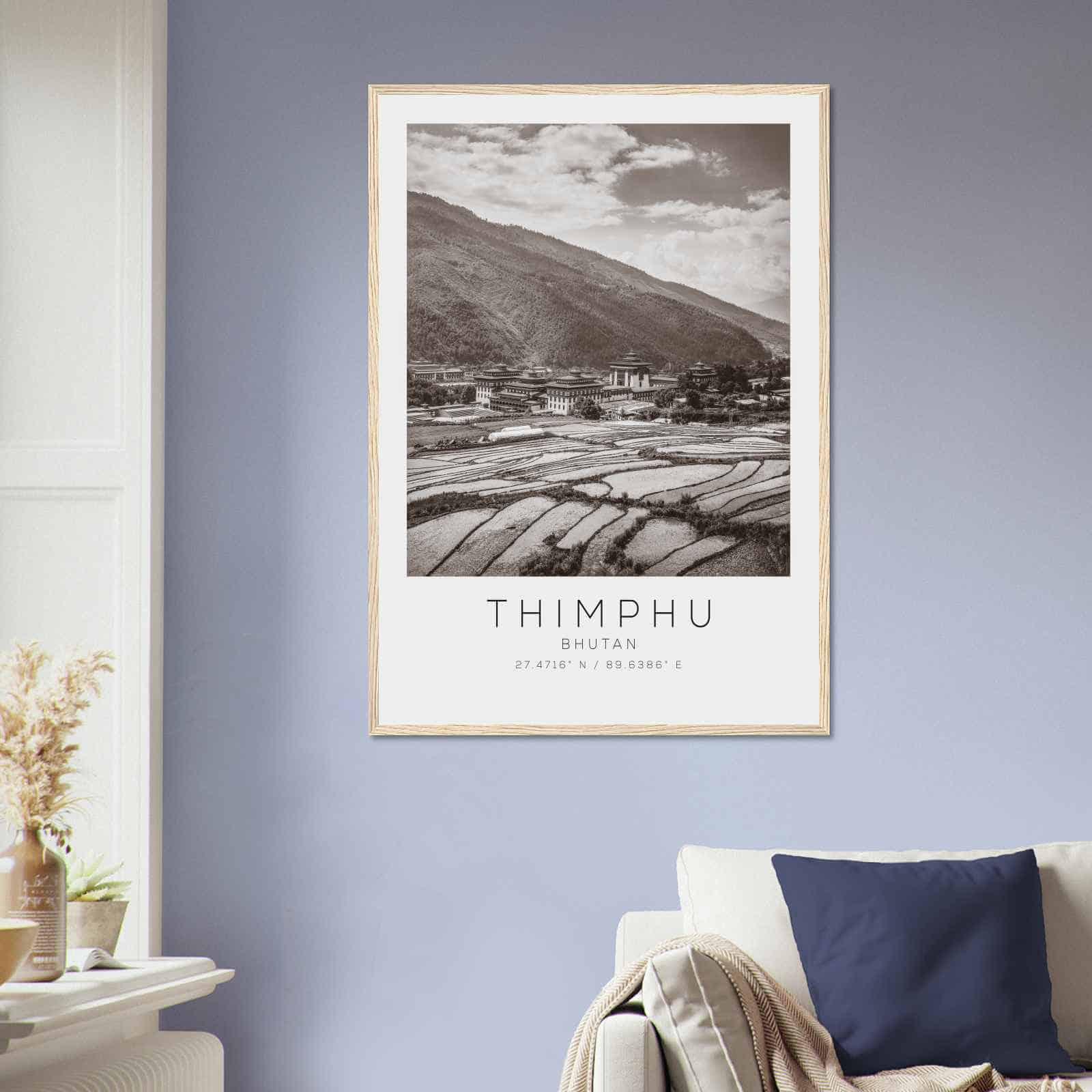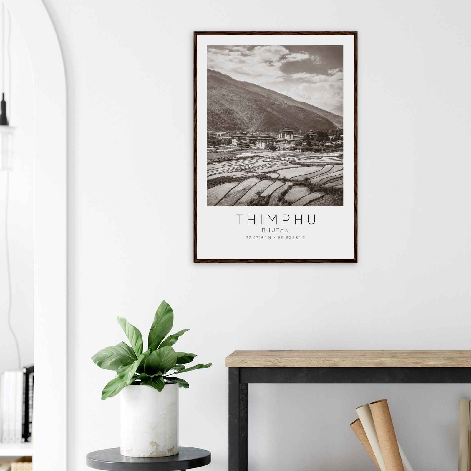 Thimphu Bhutan Travel Photo Poster BW, Thimphu Travel Print, Minimalist Travel Poster Print