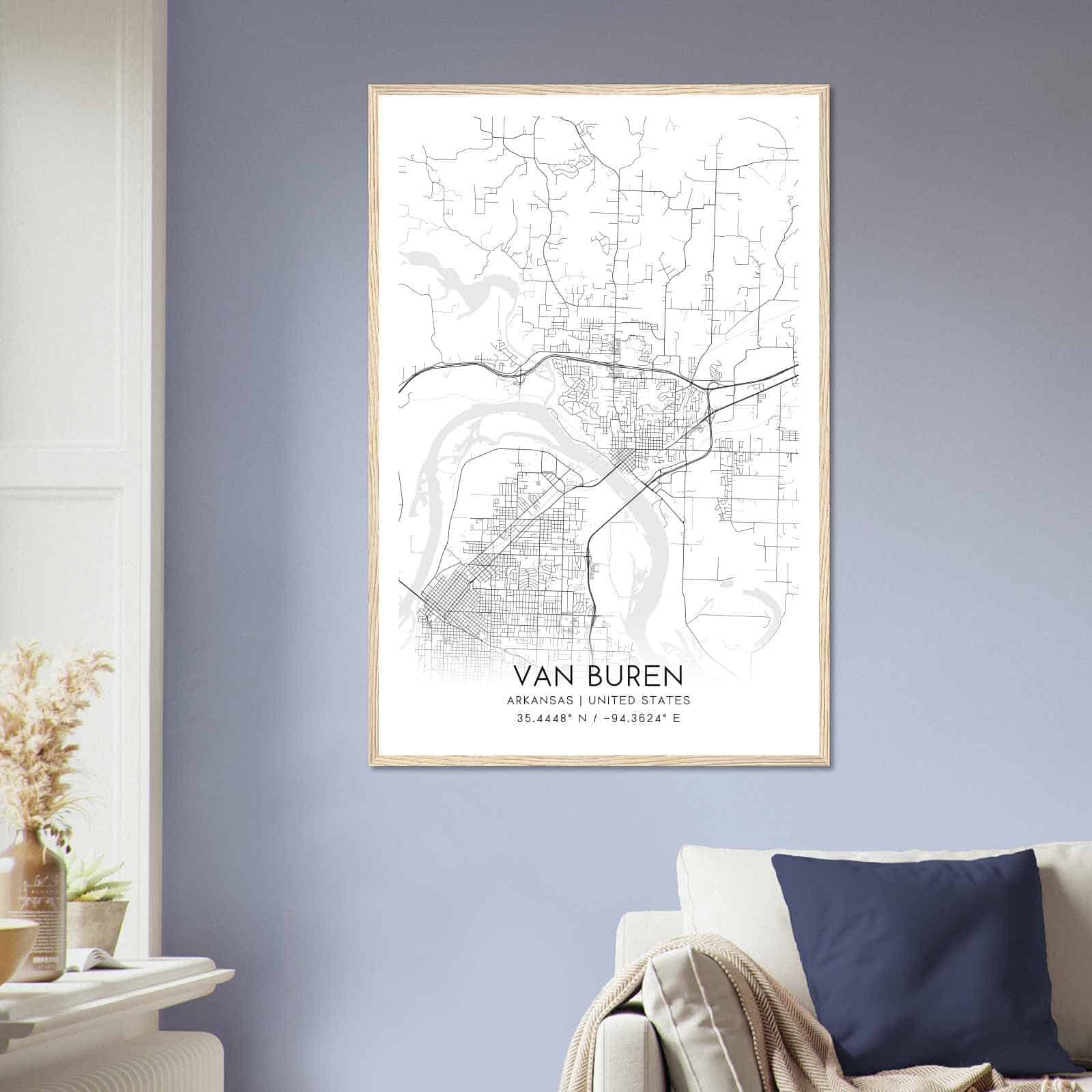 Van Buren Arkansas Map Poster, Modern Home Decor Wall Art Print
