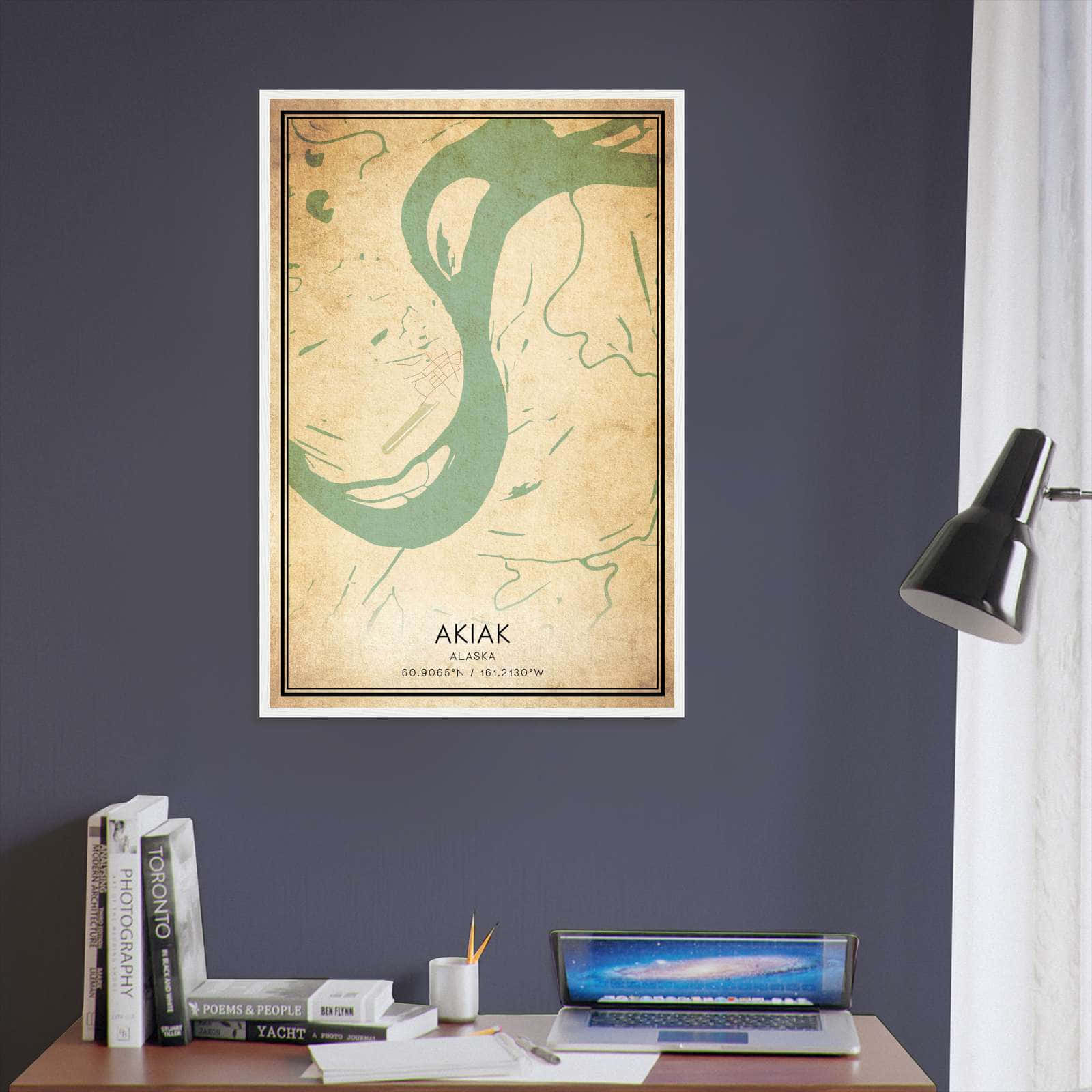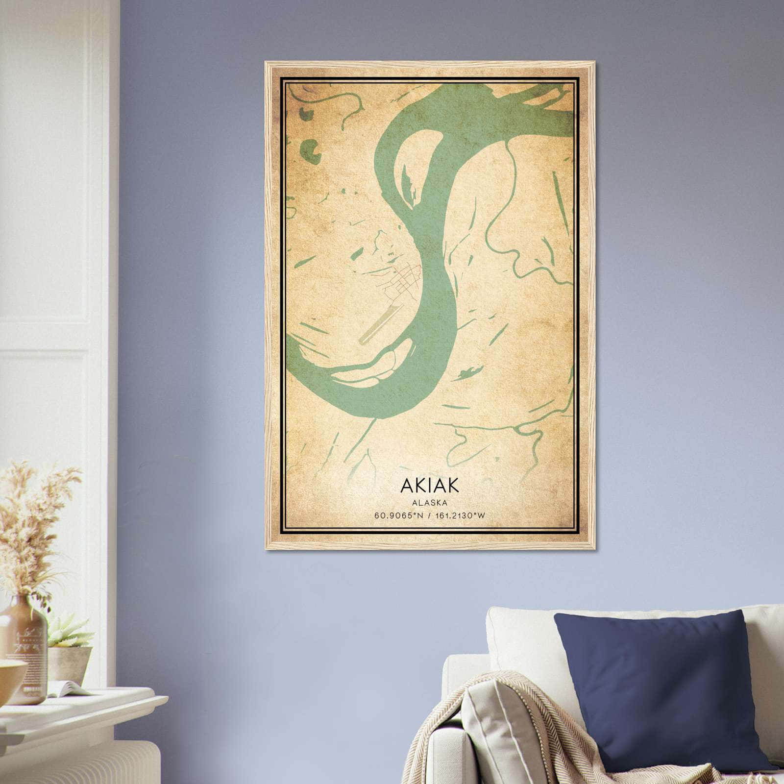 Get this Vintage Akiak Map Poster today and add a unique touch to your living space!