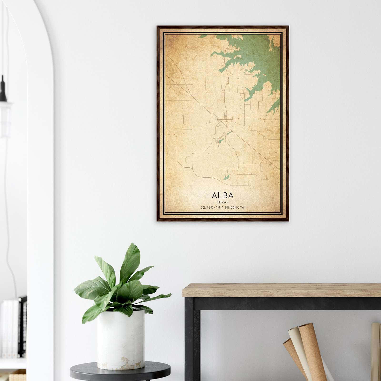 Vintage Alba Texas Map Poster, Alba TX City Road Wall Art Print