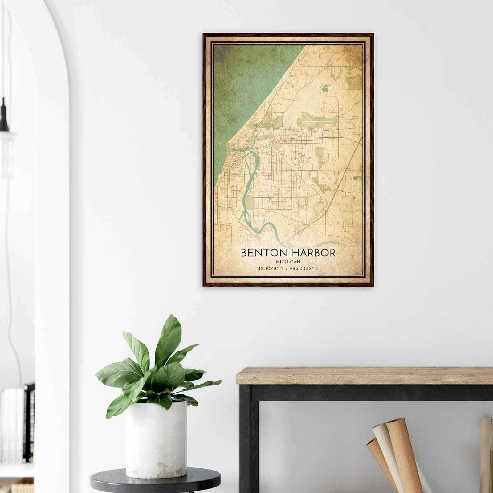 Get this Vintage Benton Harbor Map Poster today and add a unique touch to your living space!