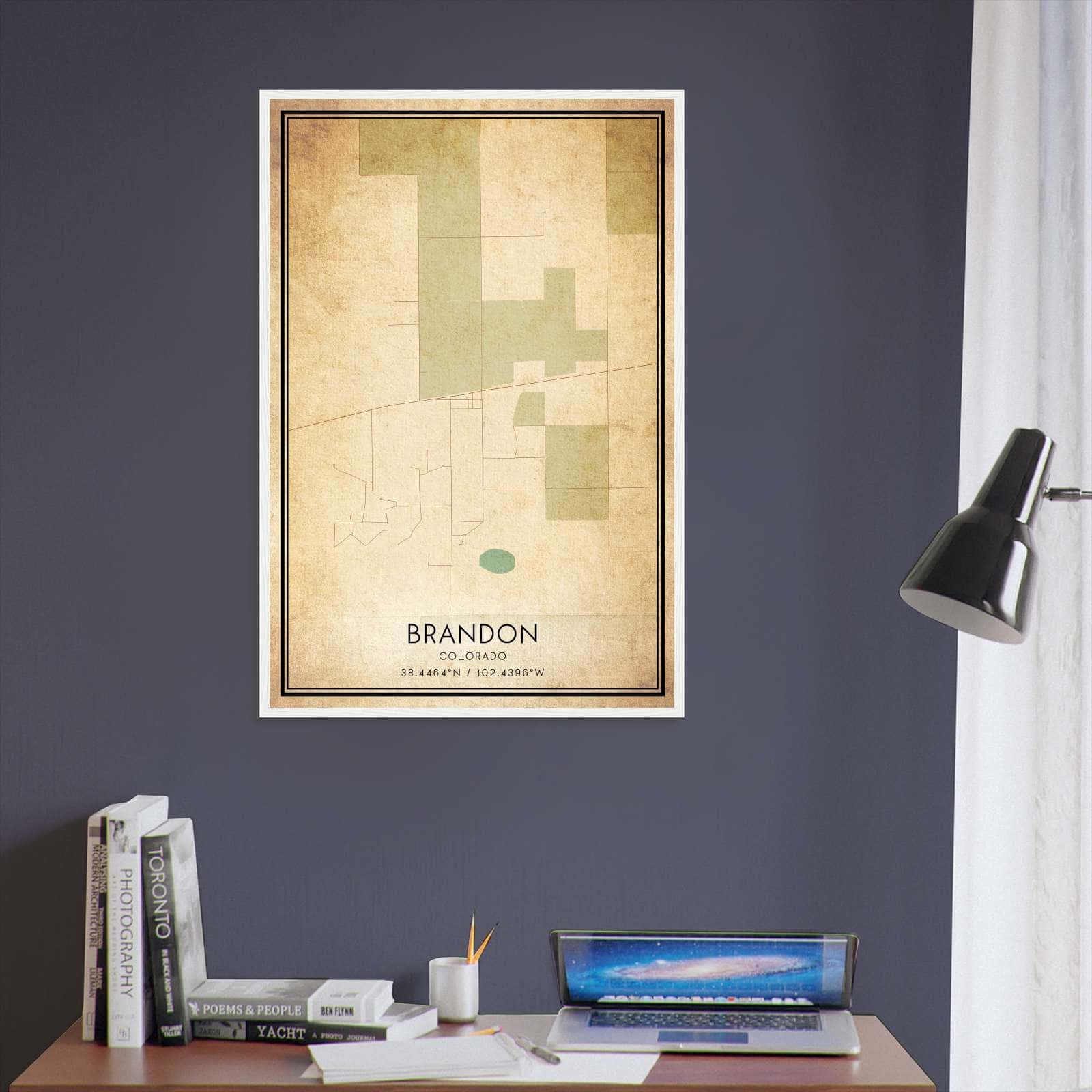 Vintage Brandon Colorado Map Poster, Brandon CO City Road Wall Art Print