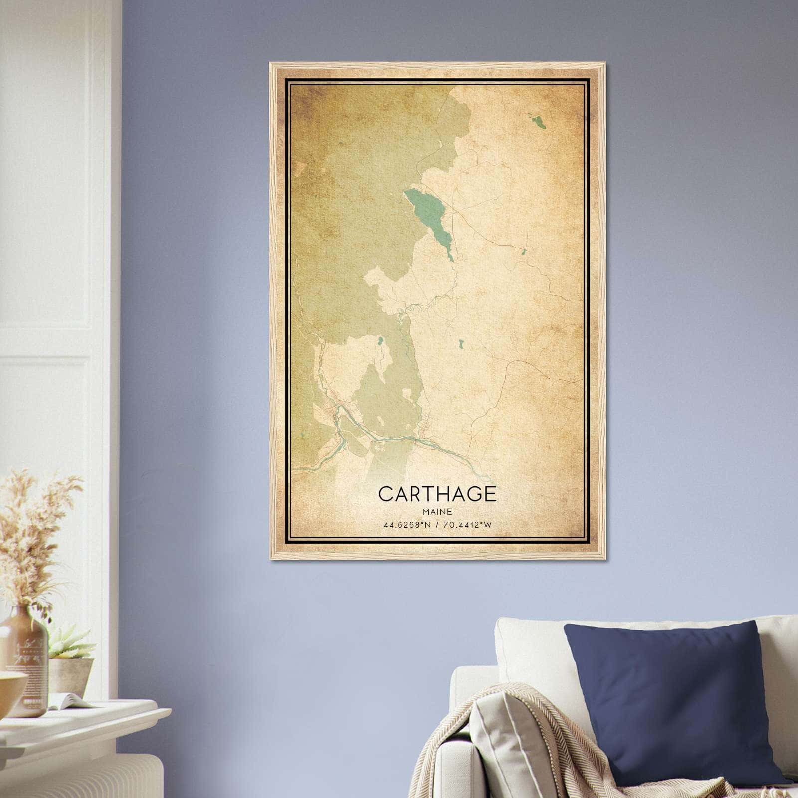 Vintage Carthage Maine Map Poster, Carthage ME City Road Wall Art Print